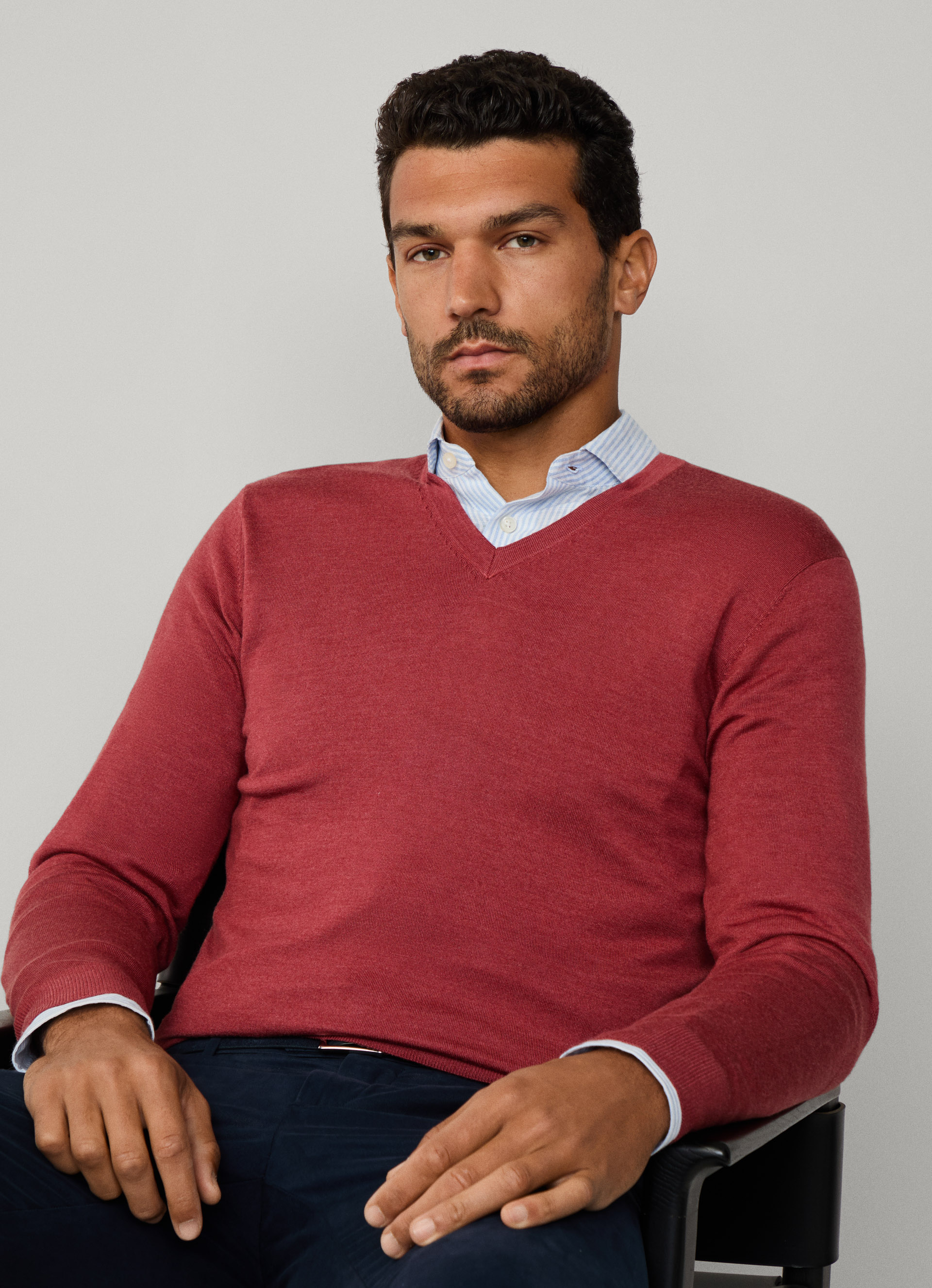 - Pullover aus Merinowolle und Seide mit V-Ausschnitt