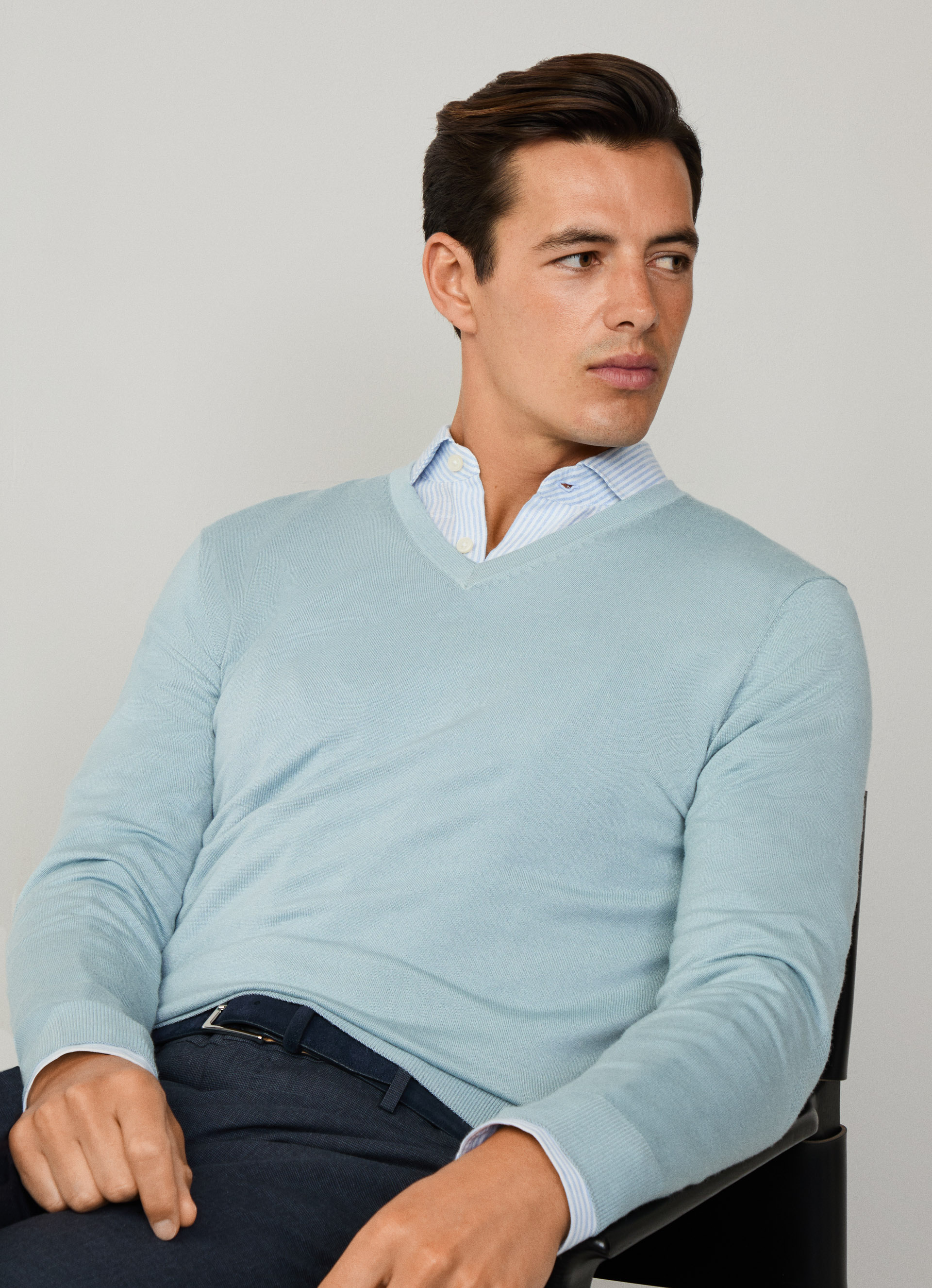 - Pullover aus Merinowolle und Seide mit V-Ausschnitt