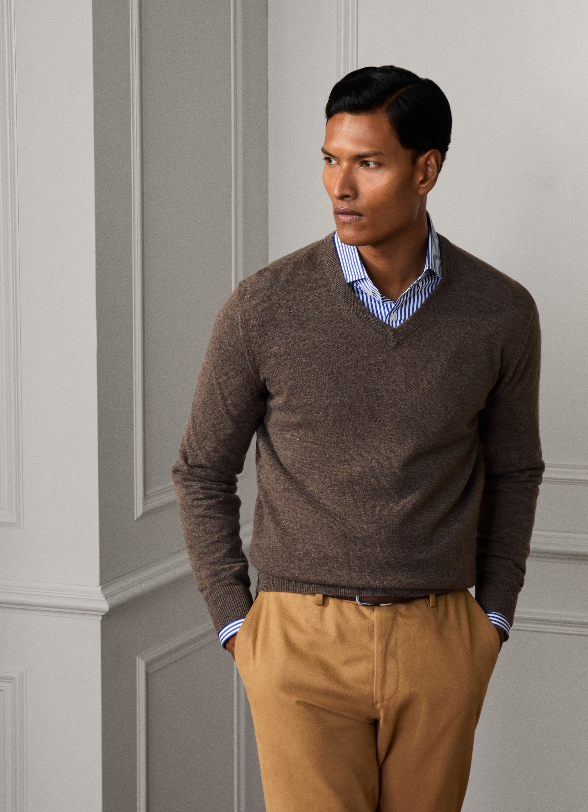 Il nostro distintivo maglione con scollo a V in lussuoso cashmere è stato lavorato a maglia utilizzando un filato molto fine da 14g, creando un capo estremamente morbido. Adatto per la mezza stagione e l'inverno.