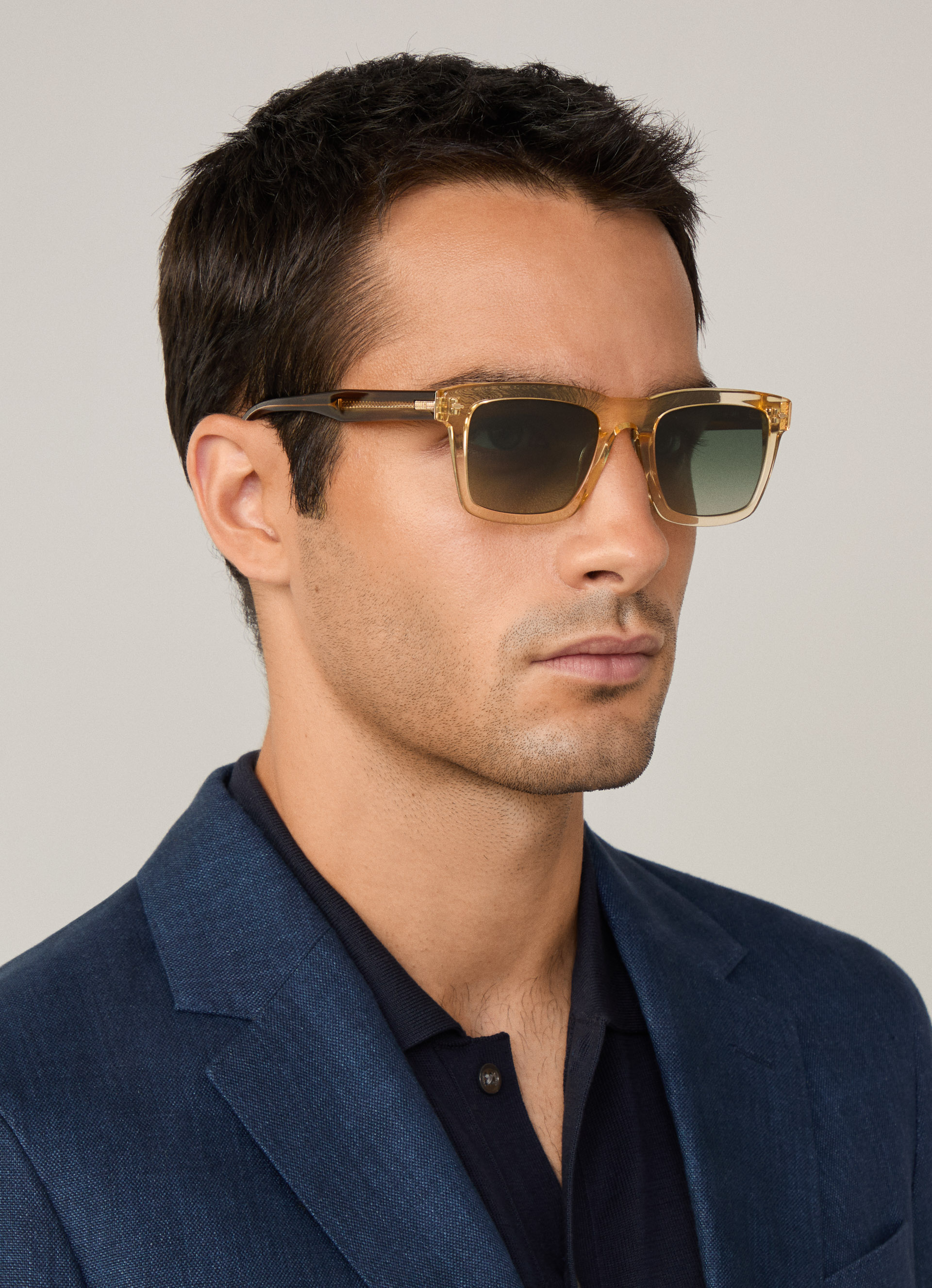 Una montatura classica realizzata in acetato leggero per il comfort. Presenta dettagli personalizzati sulla parte frontale e sulle aste. La montatura è rifinita con l'H incorniciata di Hackett.