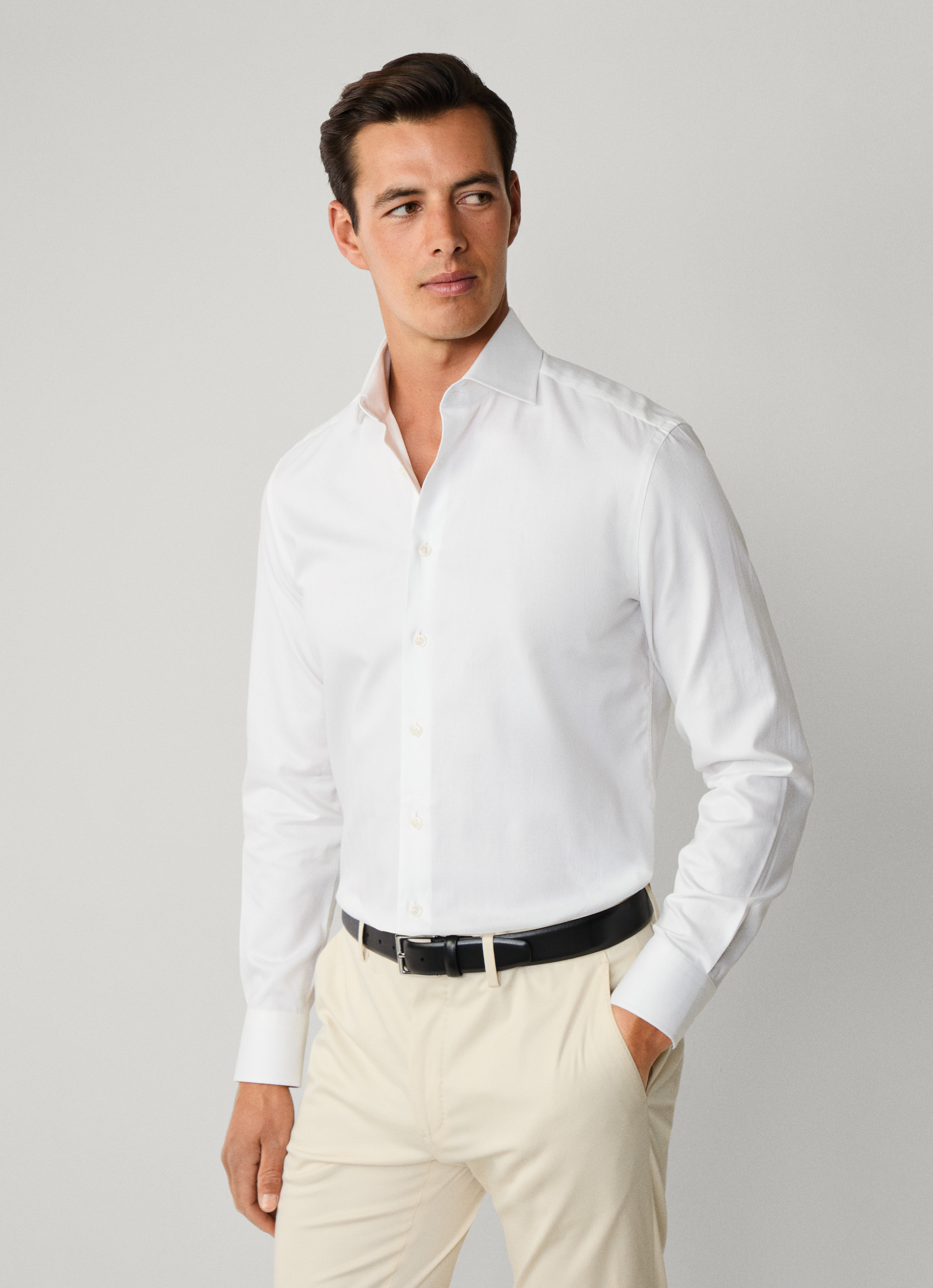 - Raffinierter, eleganter weißer Stoff in klassischer Oxford-Webart