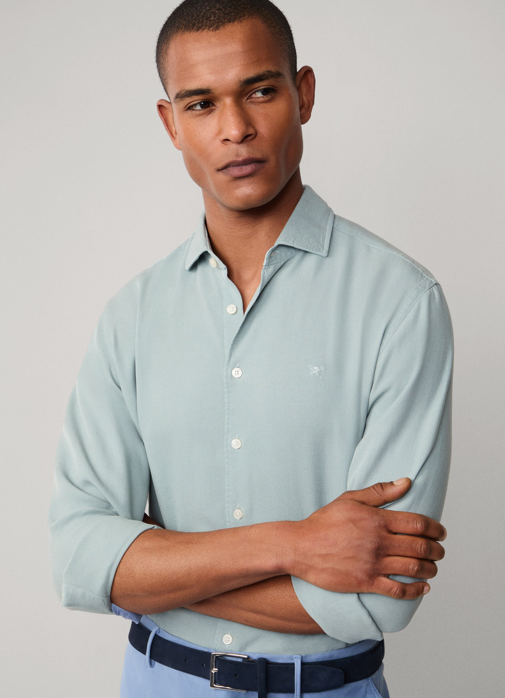 - Stückgefärbtes Baumwollmischung-Hemd bietet Weichheit und Atmungsaktivität