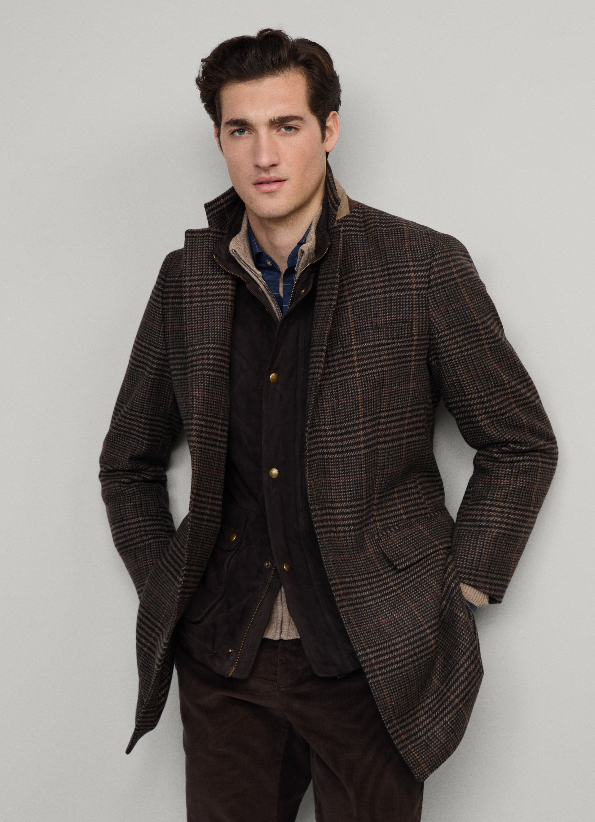 - Zeitloser Country-Check-Mantel aus einer luxuriösen Wollmischung, gewebt in Italien See More Details