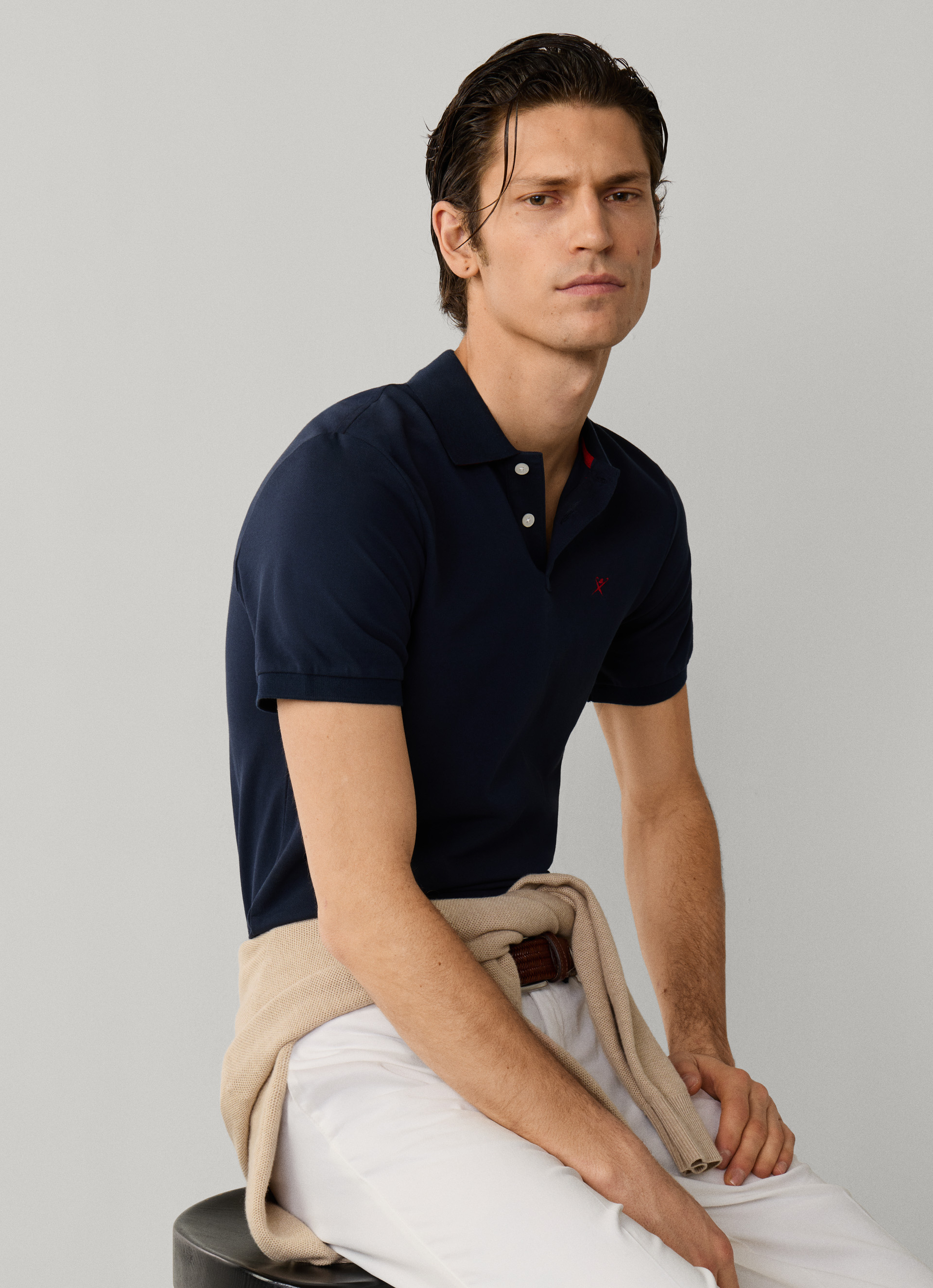 - Mit Bowlerhut- und Regenschirmstickerei in Kontrastfarbe auf der linken Brust.