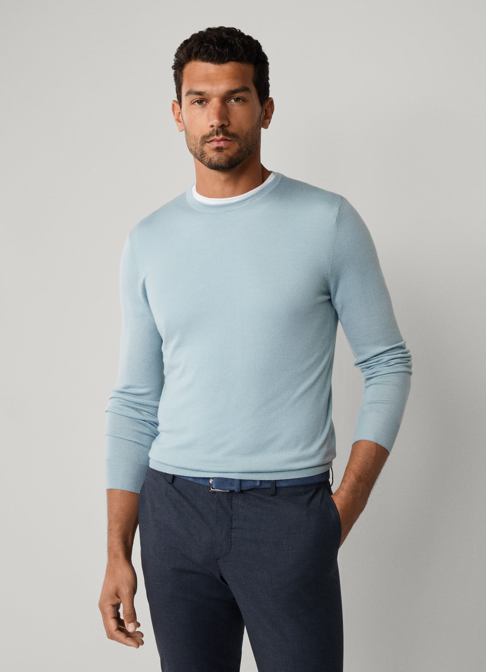 - Pullover aus Merinowolle und Seide mit Rundausschnitt