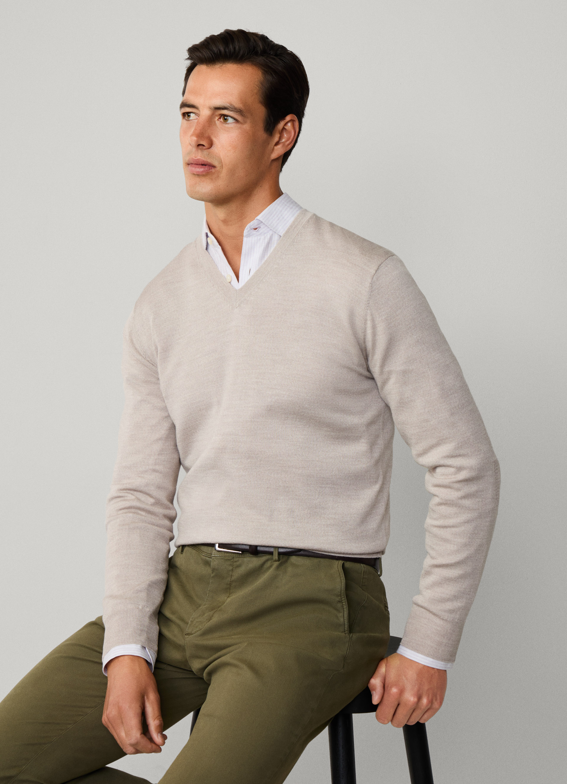 - Pullover aus Merinowolle und Seide mit V-Ausschnitt