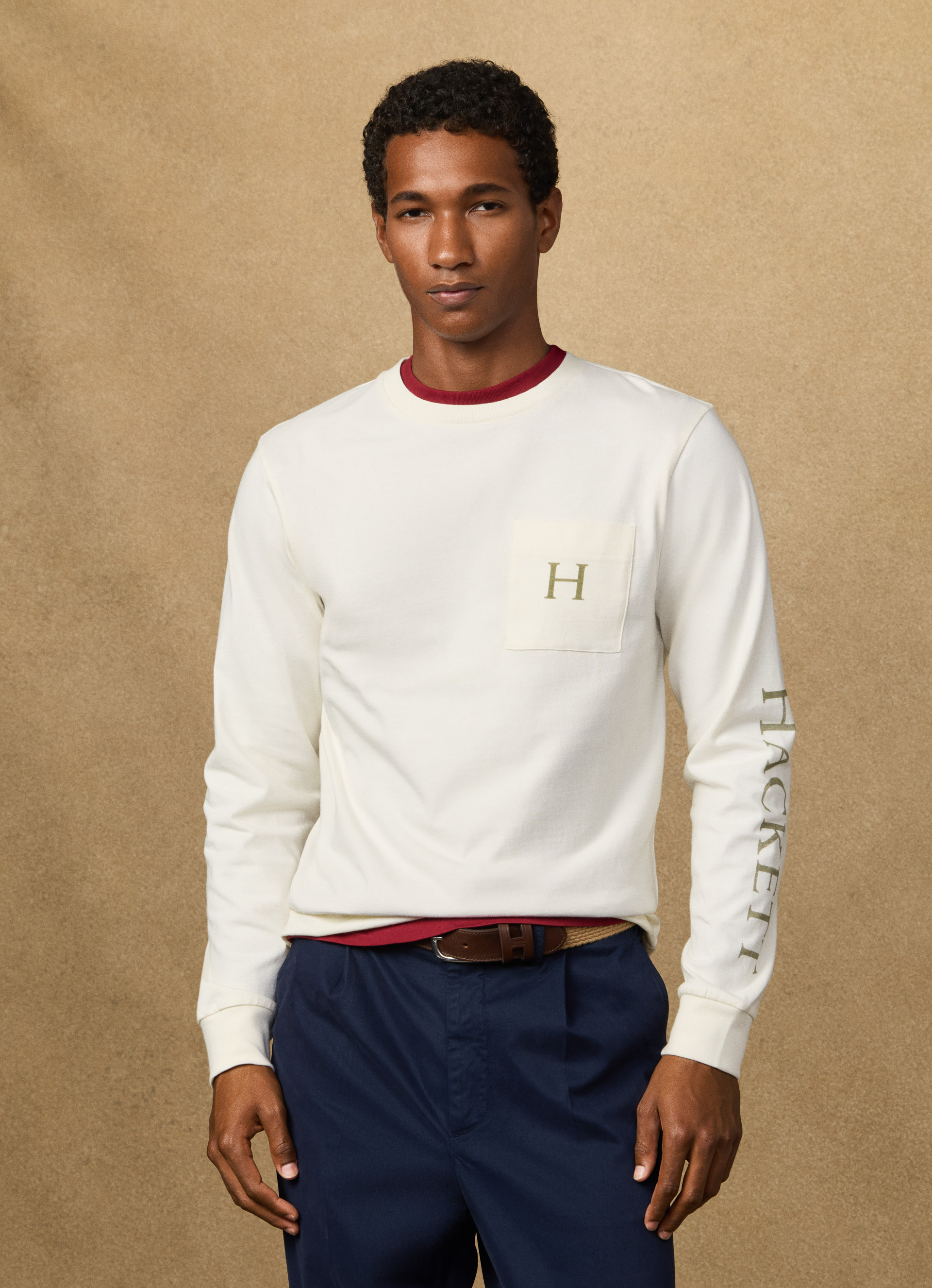 - Camiseta de manga larga con bolsillo en jersey de peso pesado