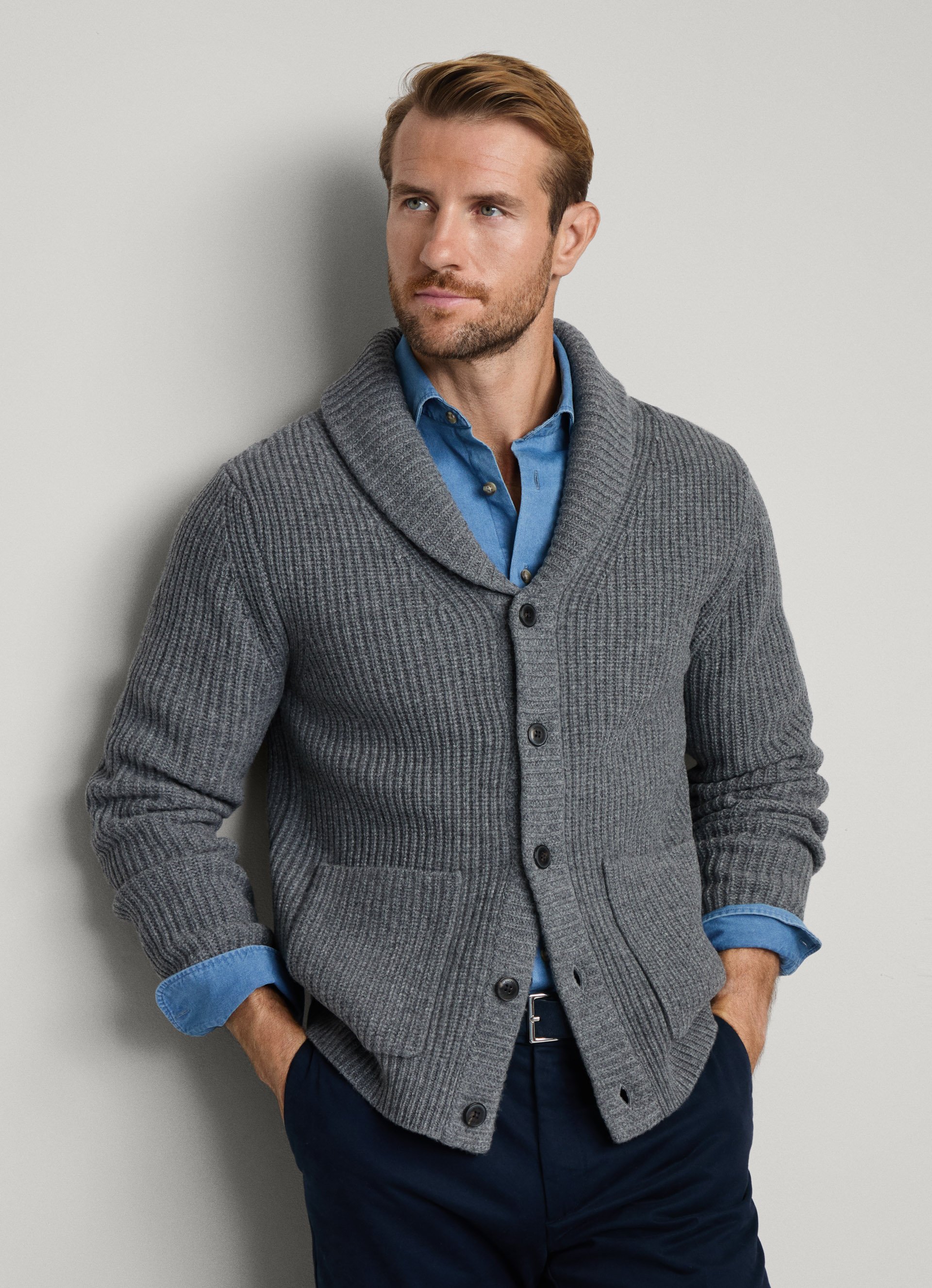 - Cárdigan con cuello chal de punto en lujosa lana de cordero superfina