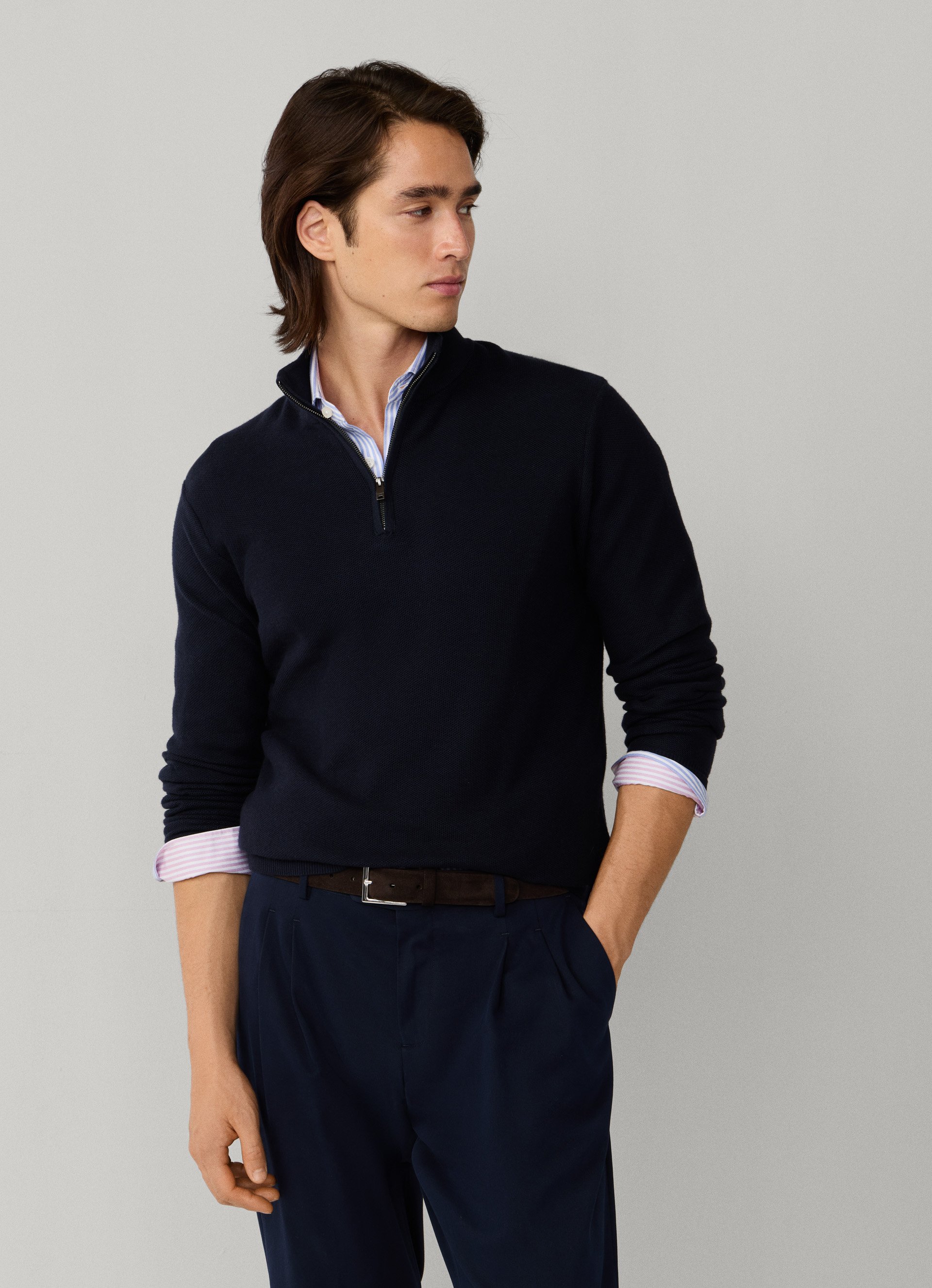 jersey con cremallera textura panal mezcla de cashmere