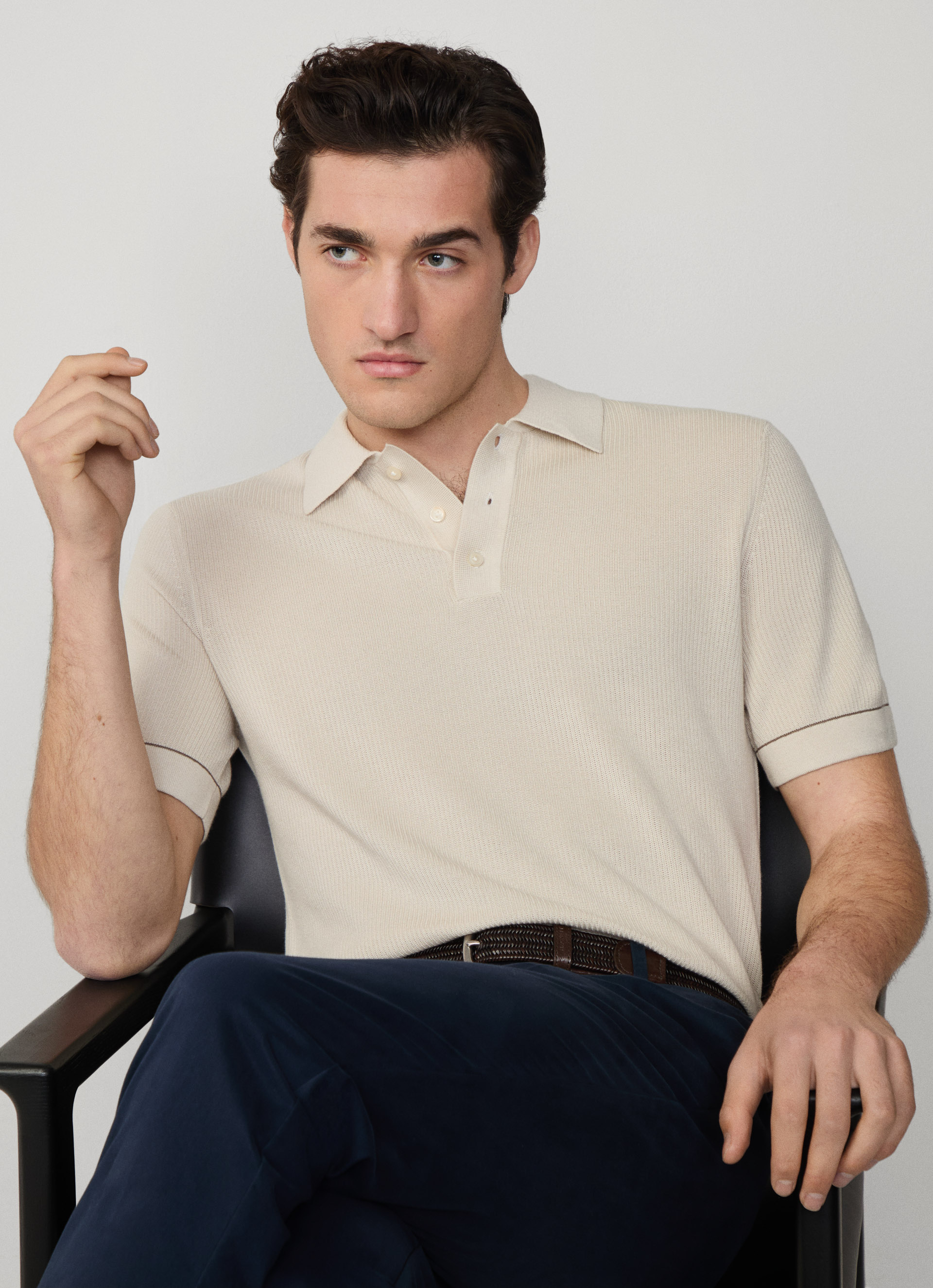 - Polo completamente confeccionado en una puntada texturizada para un look refinado