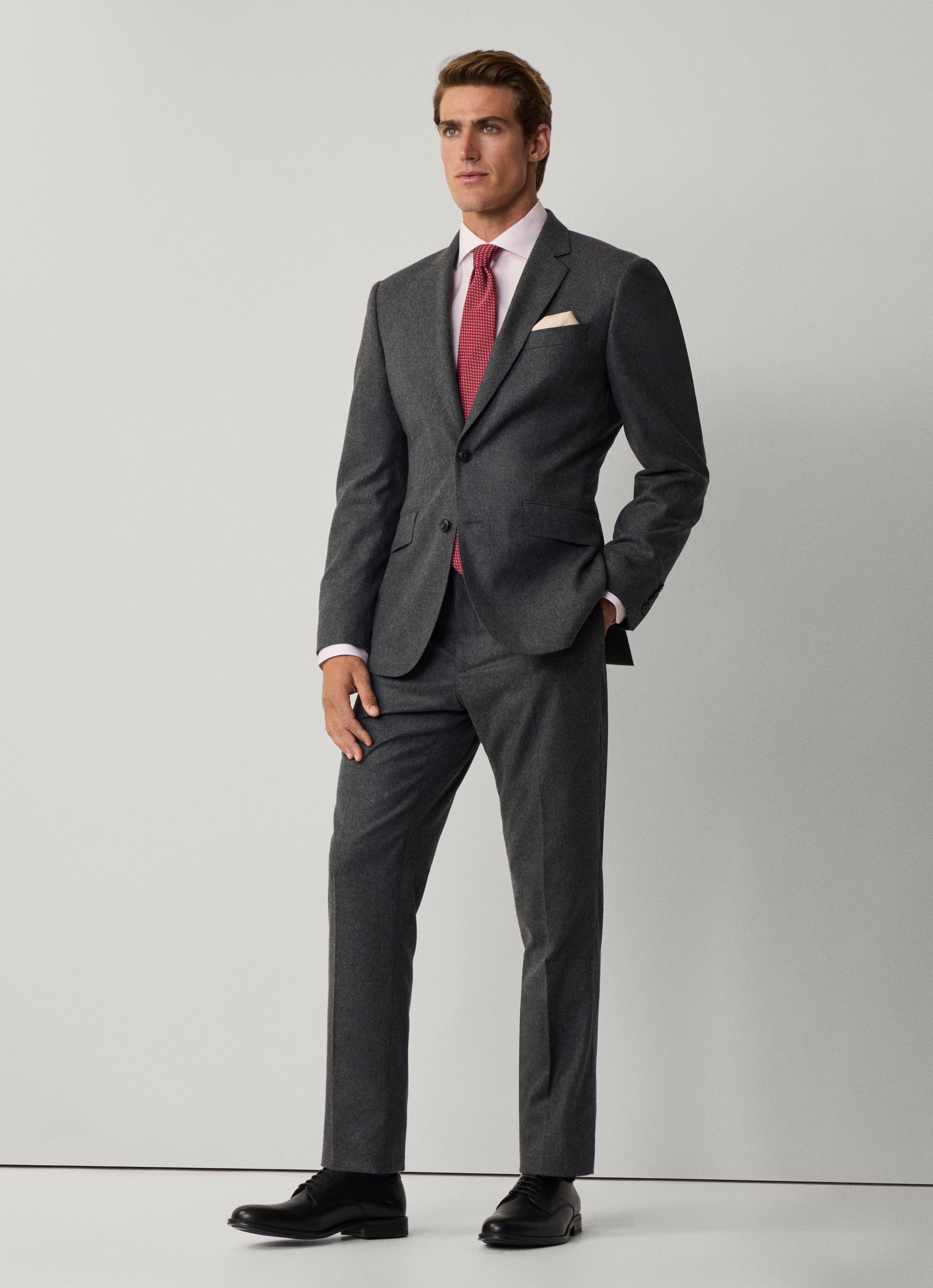 - Presenta cierre de dos botones, una solapa de muesca, puños abotonados y bolsillos con solapa para un diseño atemporal