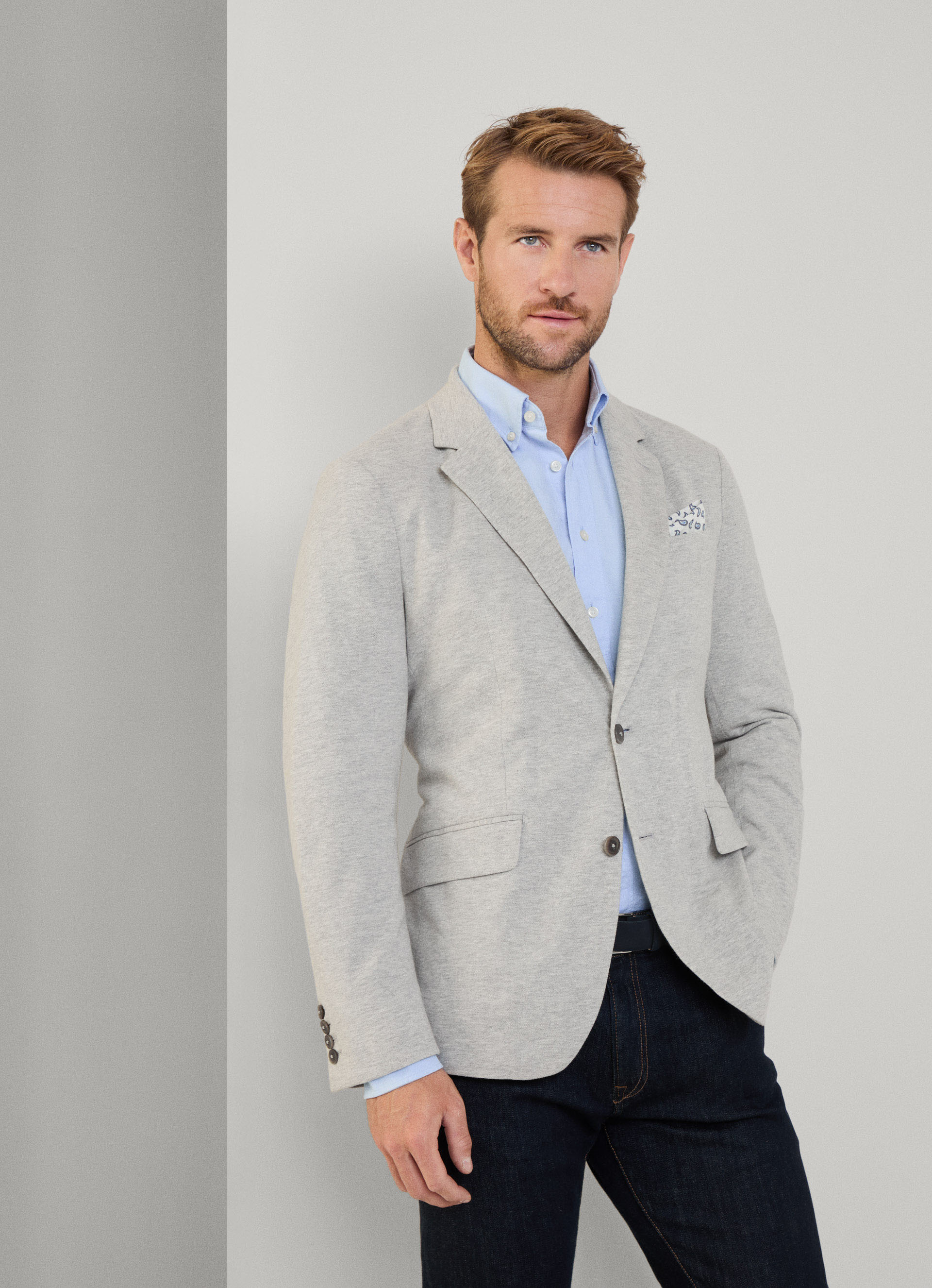 - Blazer en tissu piqué de coton gris chiné See More Details