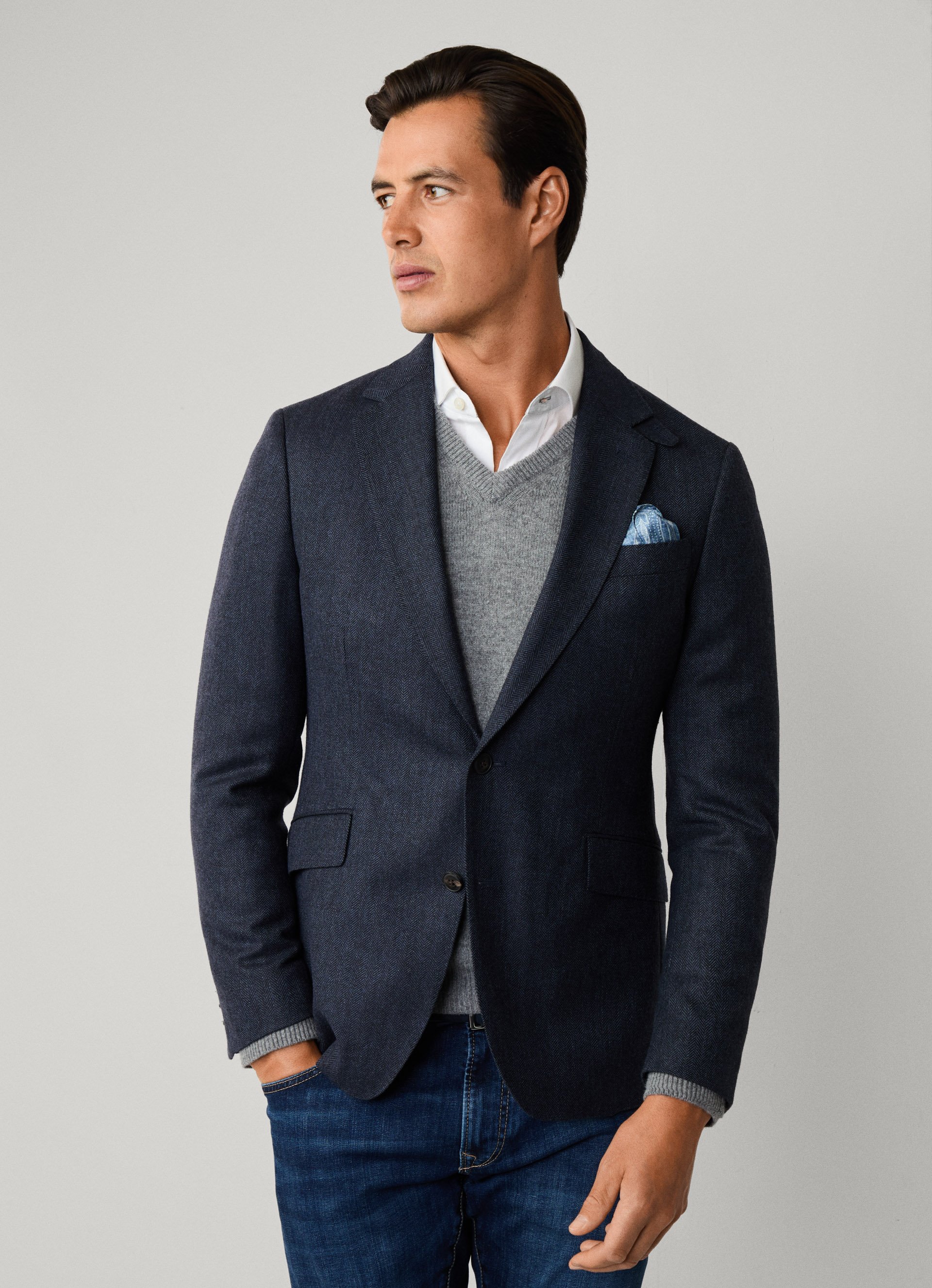 blazer en laine mélangée à chevrons