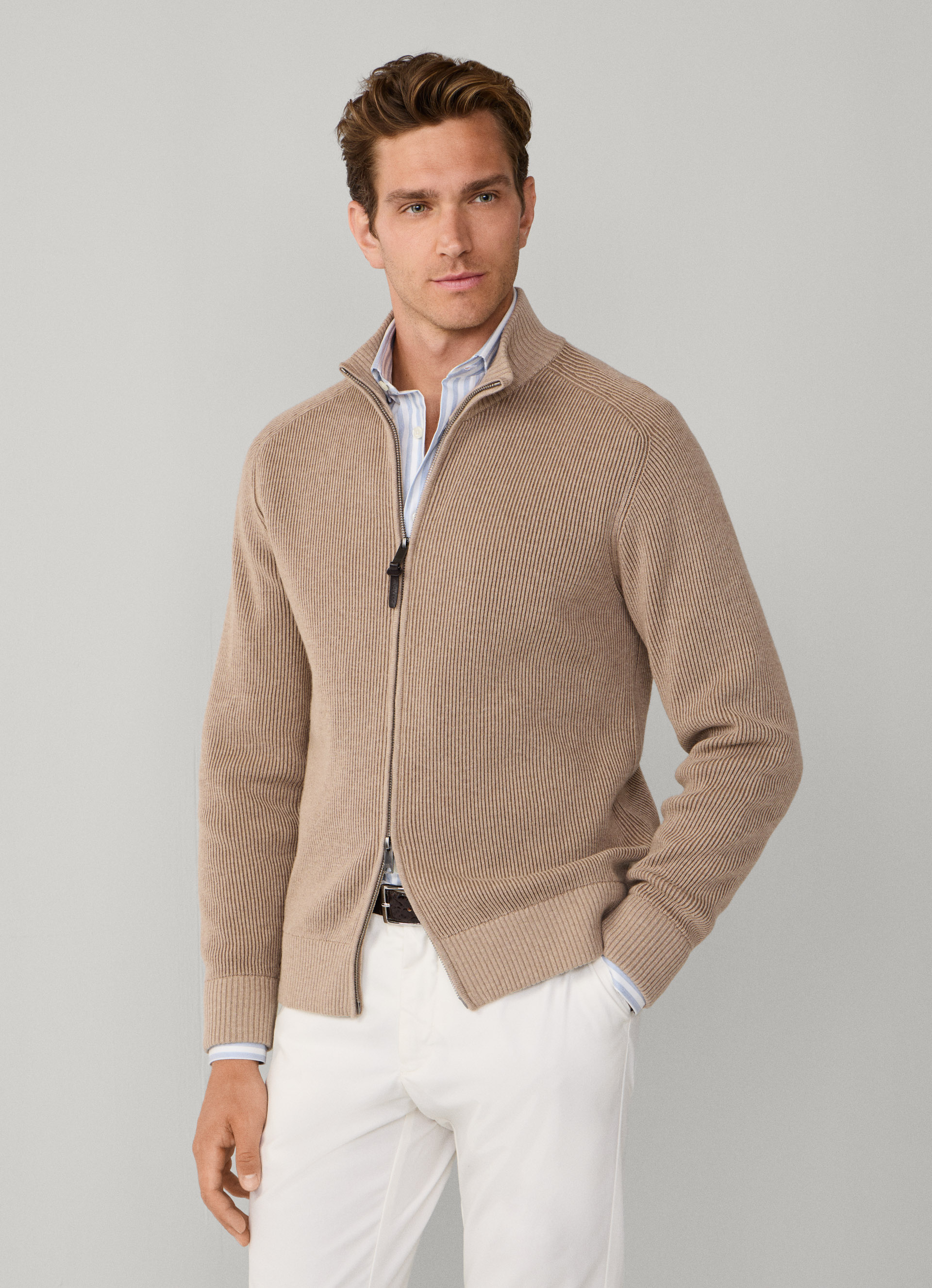 - Tricoté dans un mélange doux de laine mérinos et de coton, ce cardigan est confectionné dans un point de côte bicolore qui crée de la profondeur et de la texture