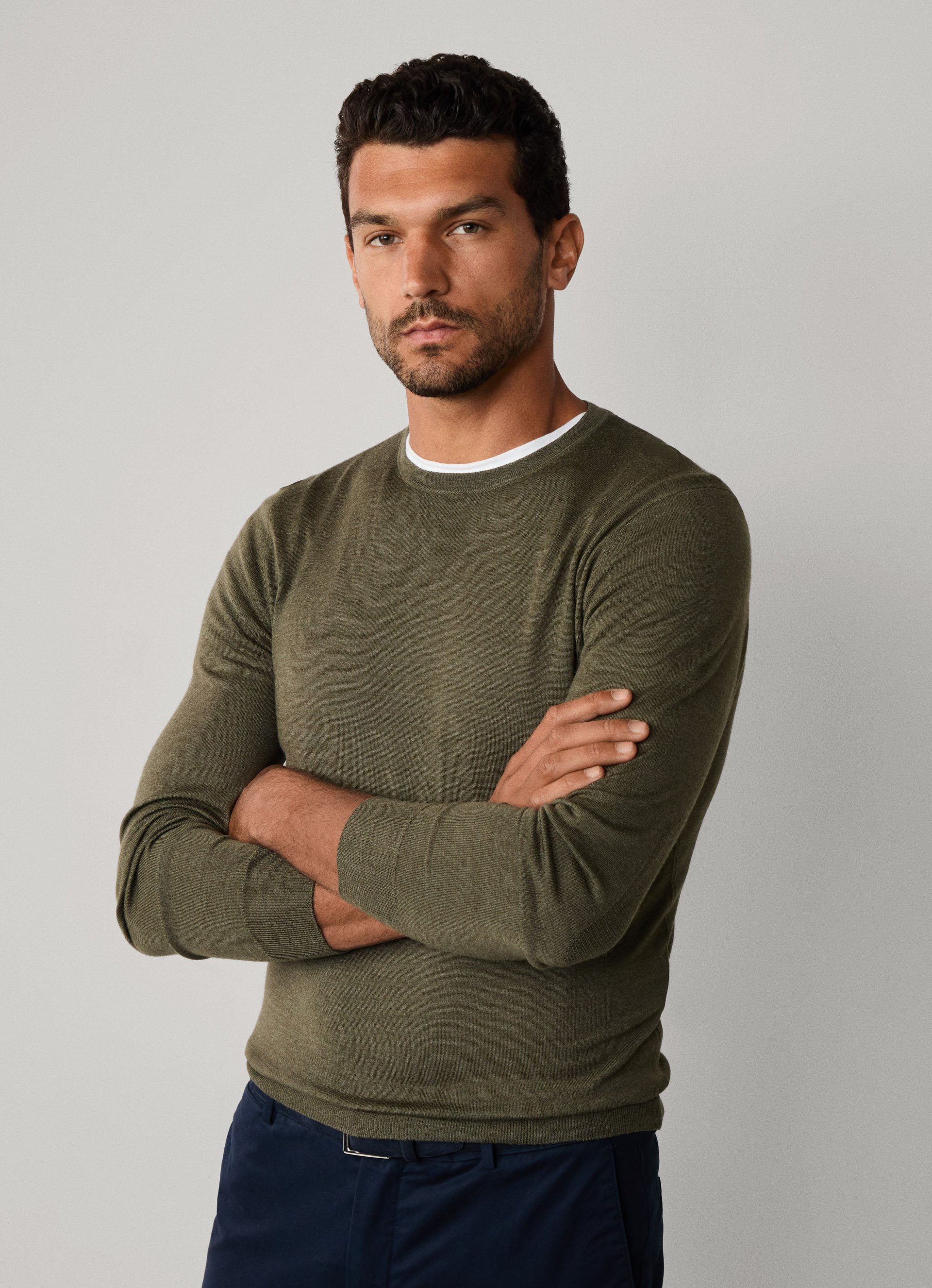 - Pull À Col Rond En Laine Mérinos-Soie teint en pièce