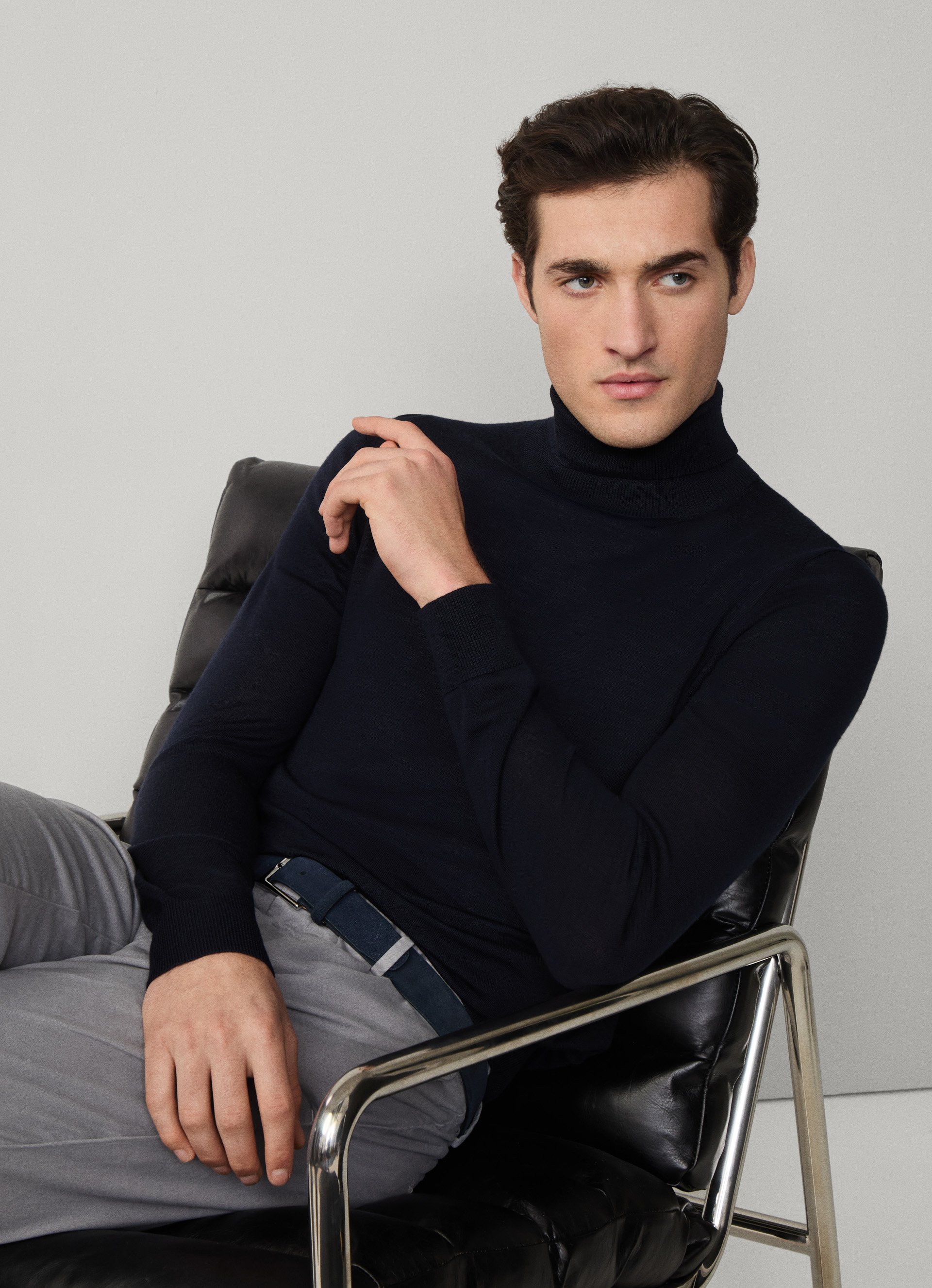 - Pull à col roulé doux tricoté dans un mélange de laine mérinos et de soie