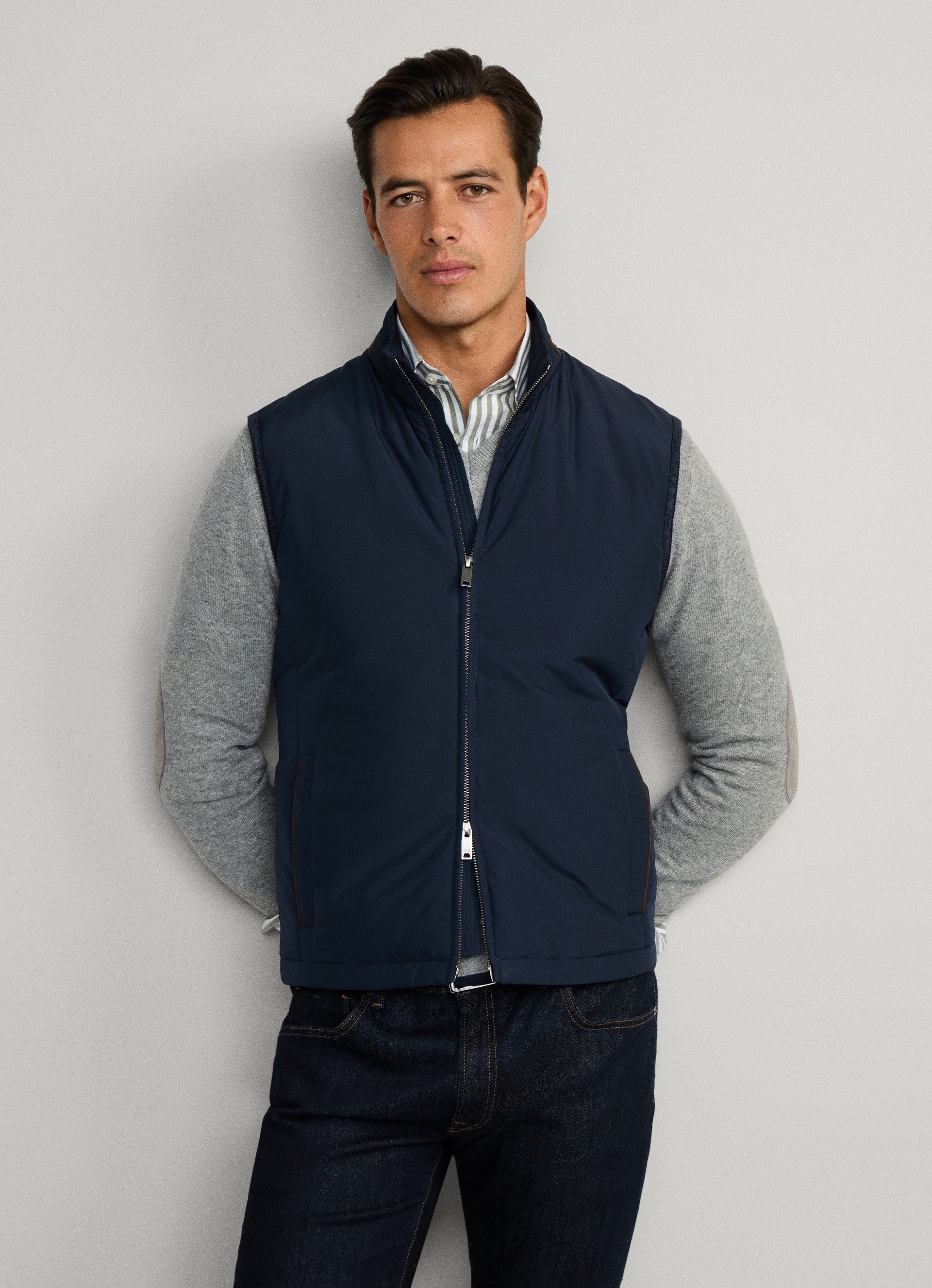 - Water-resistant finish, light fill insulation, suede trims and small metal branding on back collar See More Details