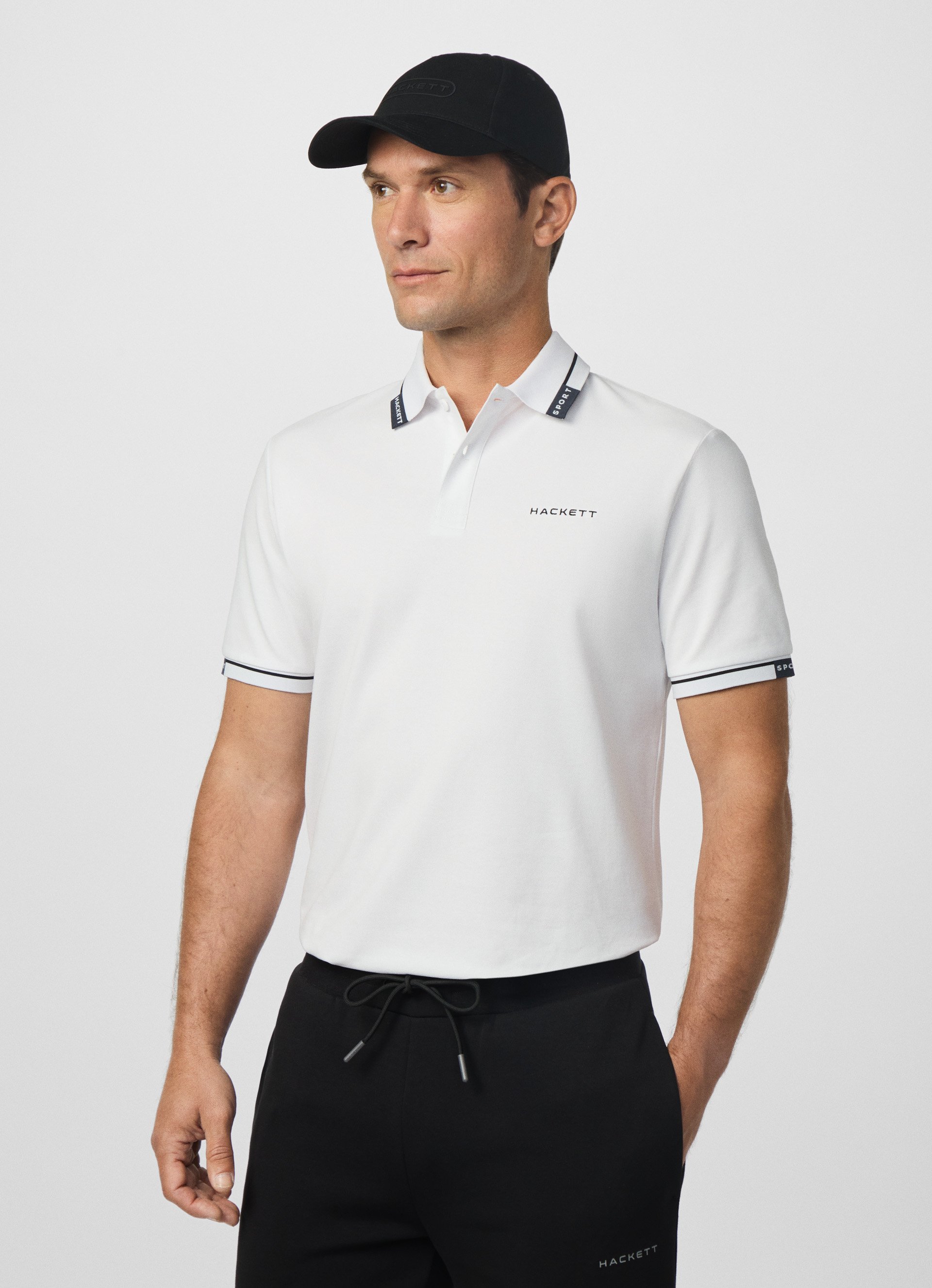 - Contrast Hackett branding at the left chest, as well as on both sides of the collar for additional detailing