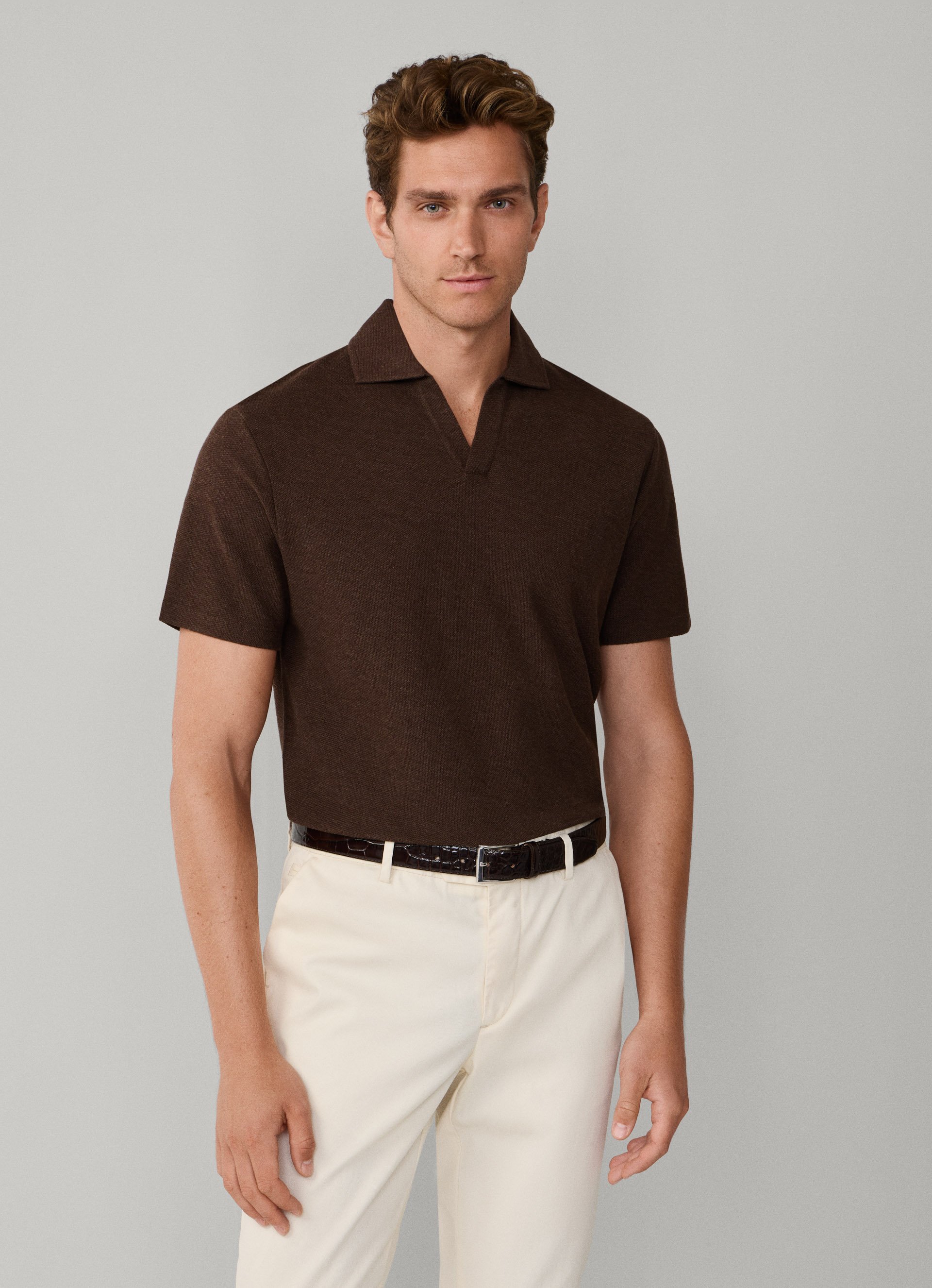 - 100% cotton honeycomb texture knit polo shirt
