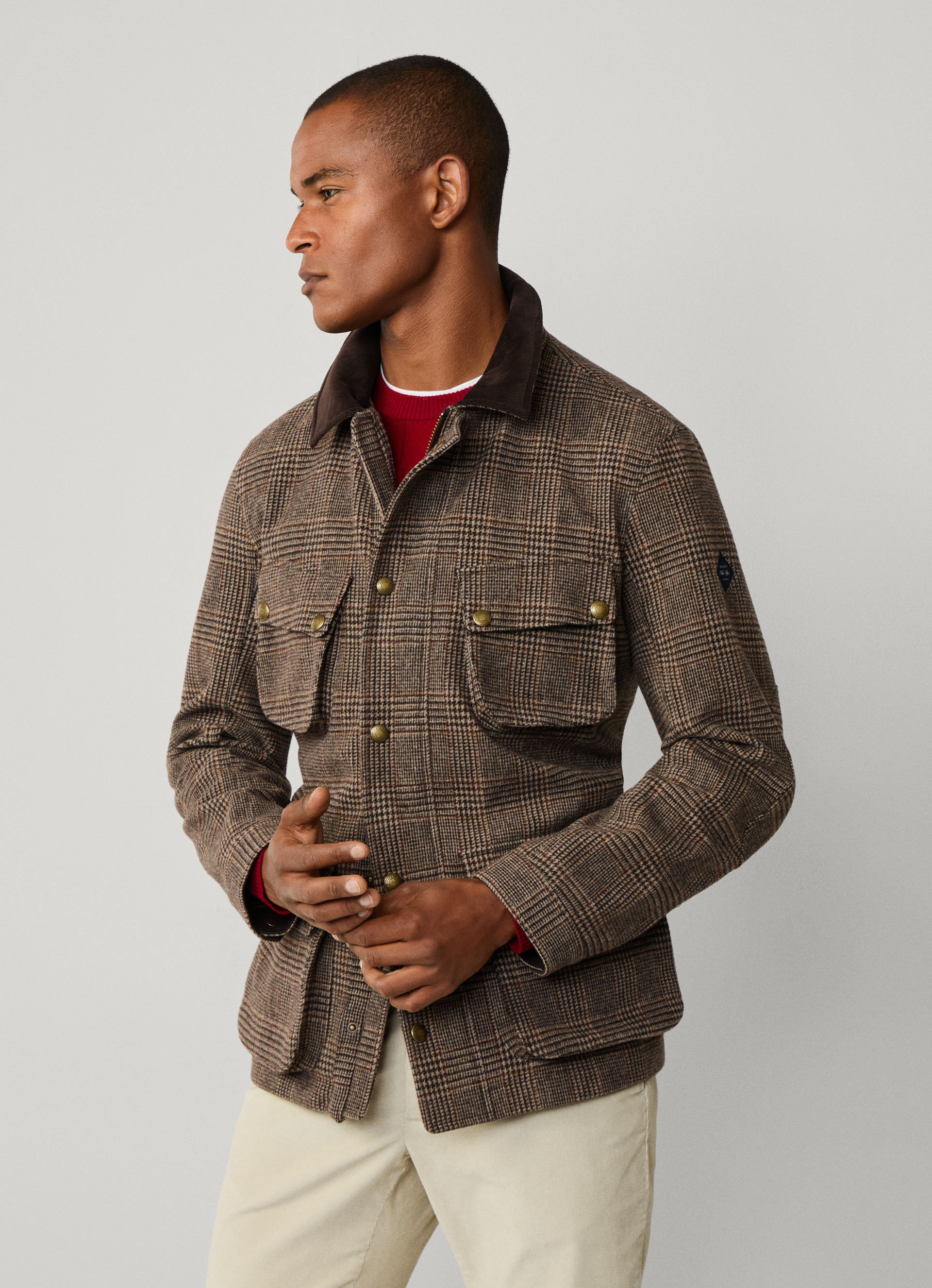 - A British country inspired update to our Iconic jacket fabricated in a yarn dyed check with self elbow patches and suede trimming See More Details
