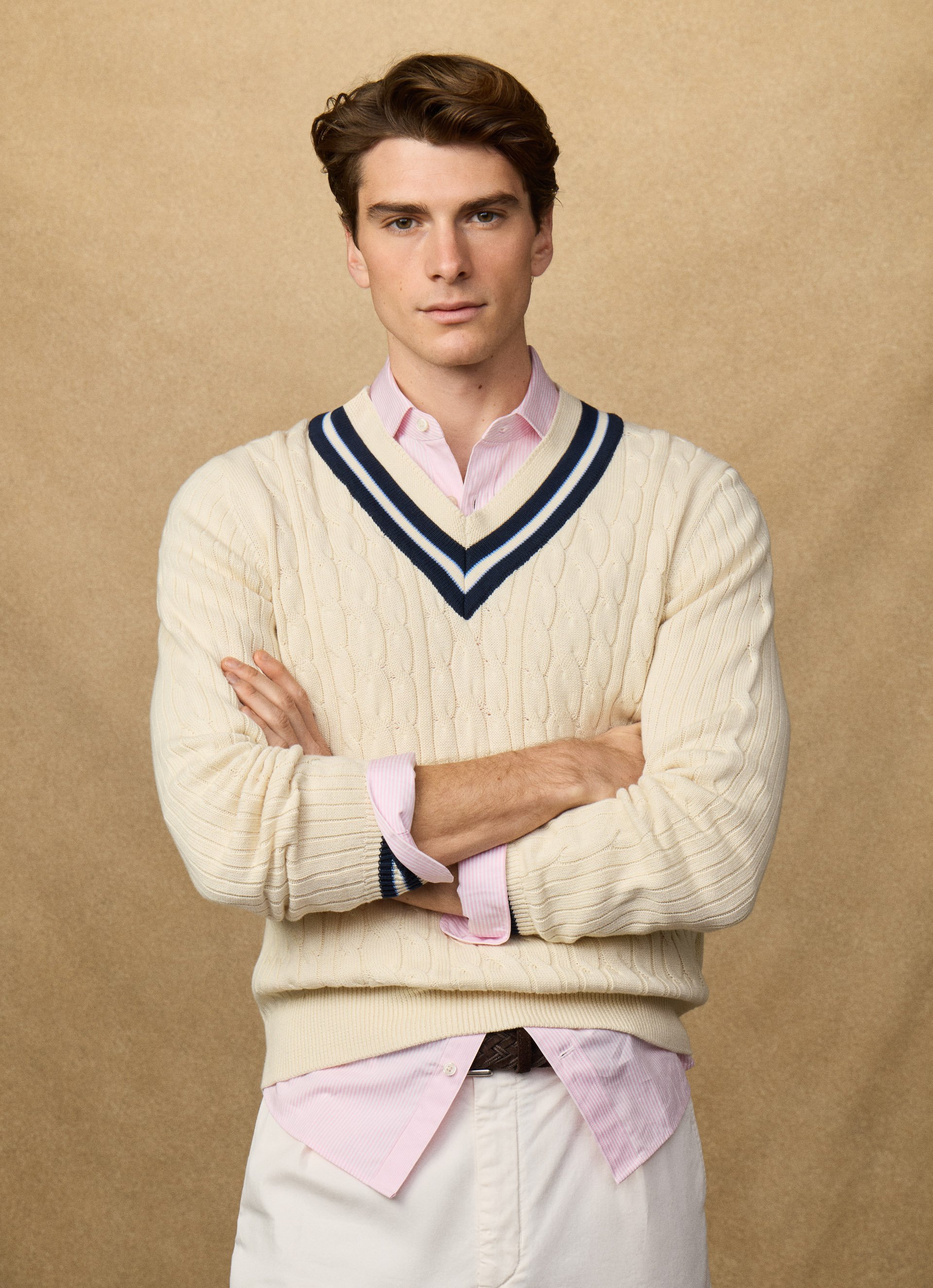 cricket cable knit v-neck jumper