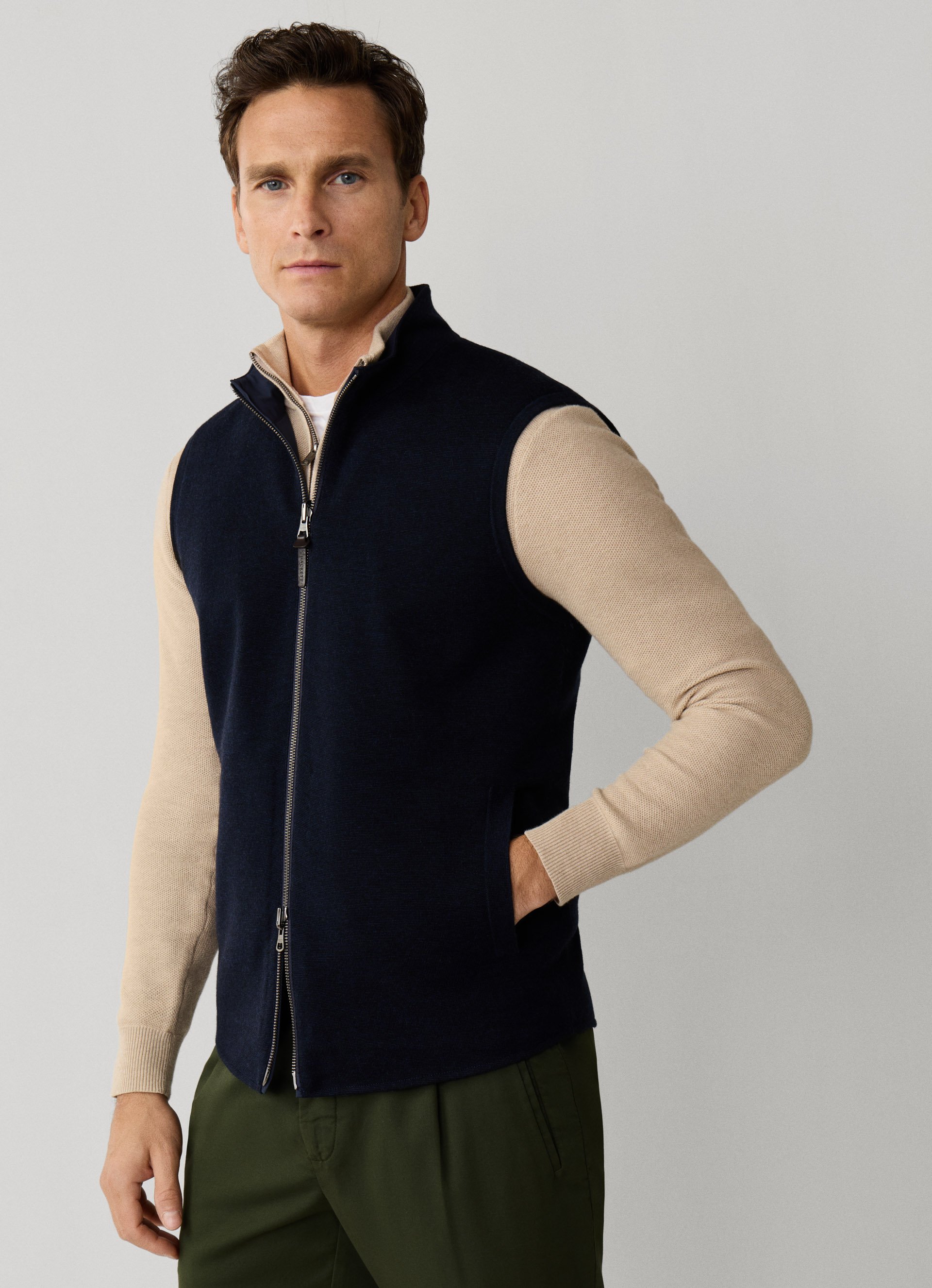 - Resersible Gilet with a Nylon side and Milano Stitch Merino Wool Knitted reverse