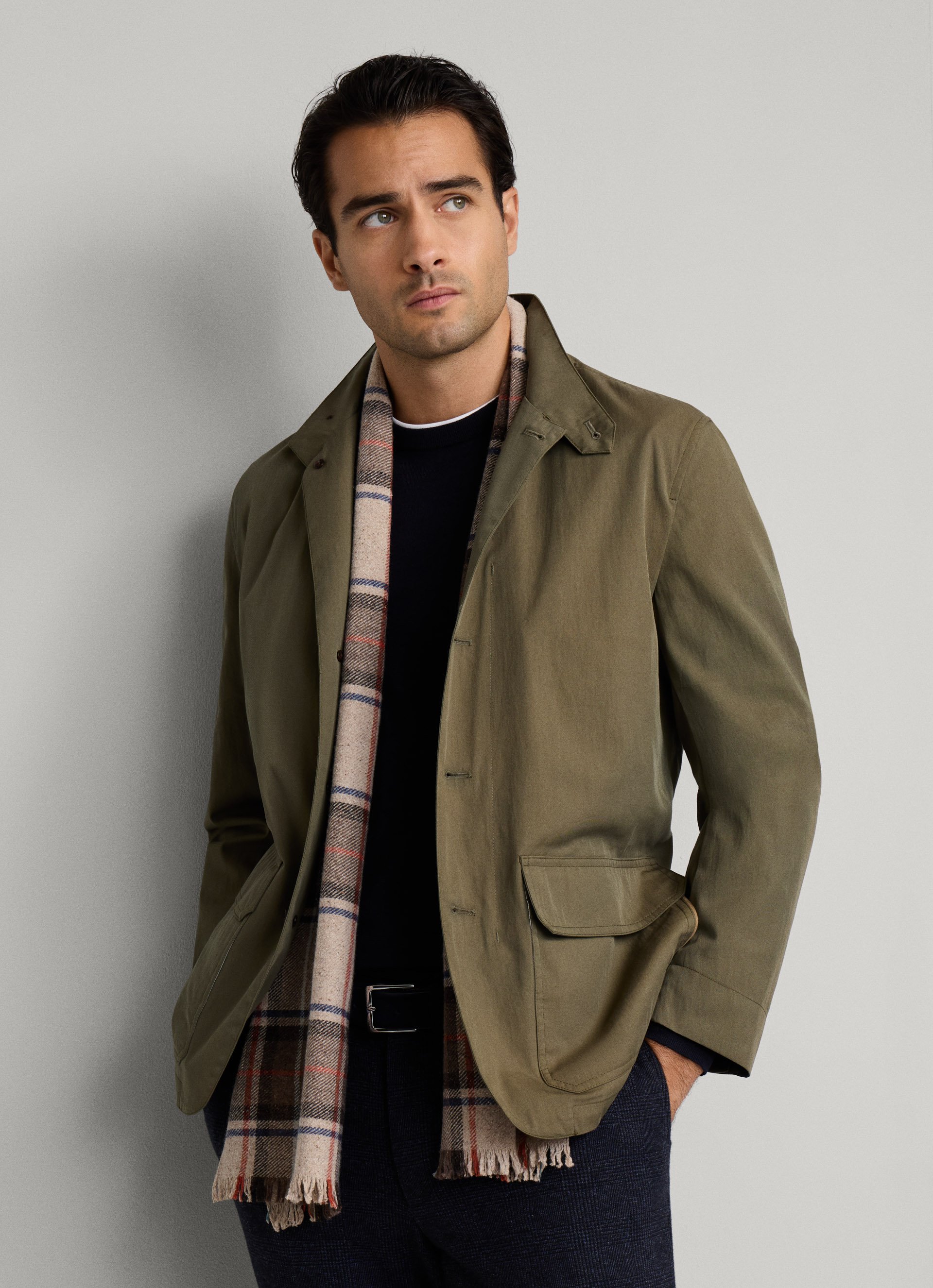 - Half lined internals for a transitional feel with lower flap patch pockets, elasticated back waist band and button cuff s