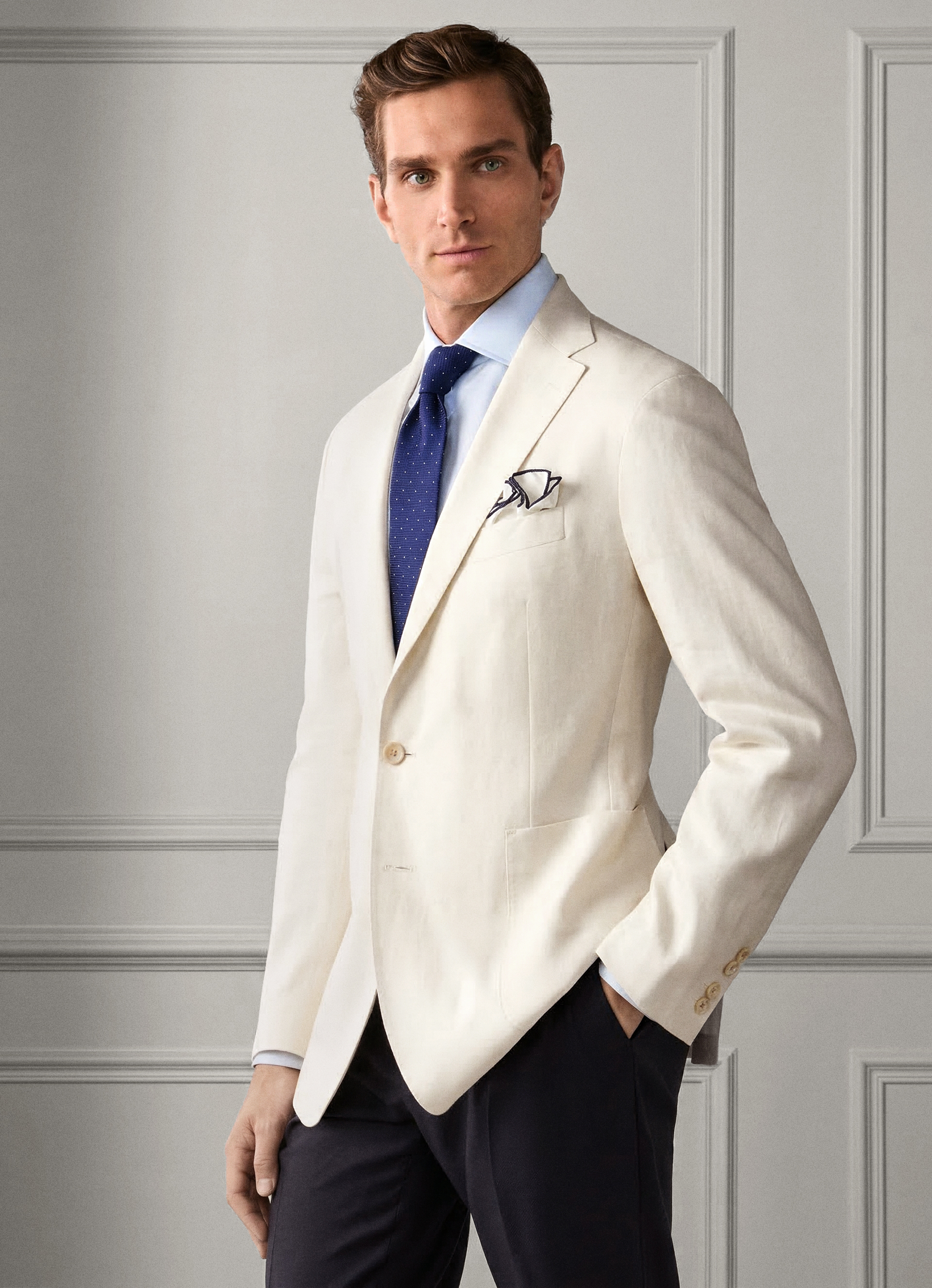 linen-cotton herringbone blazer
