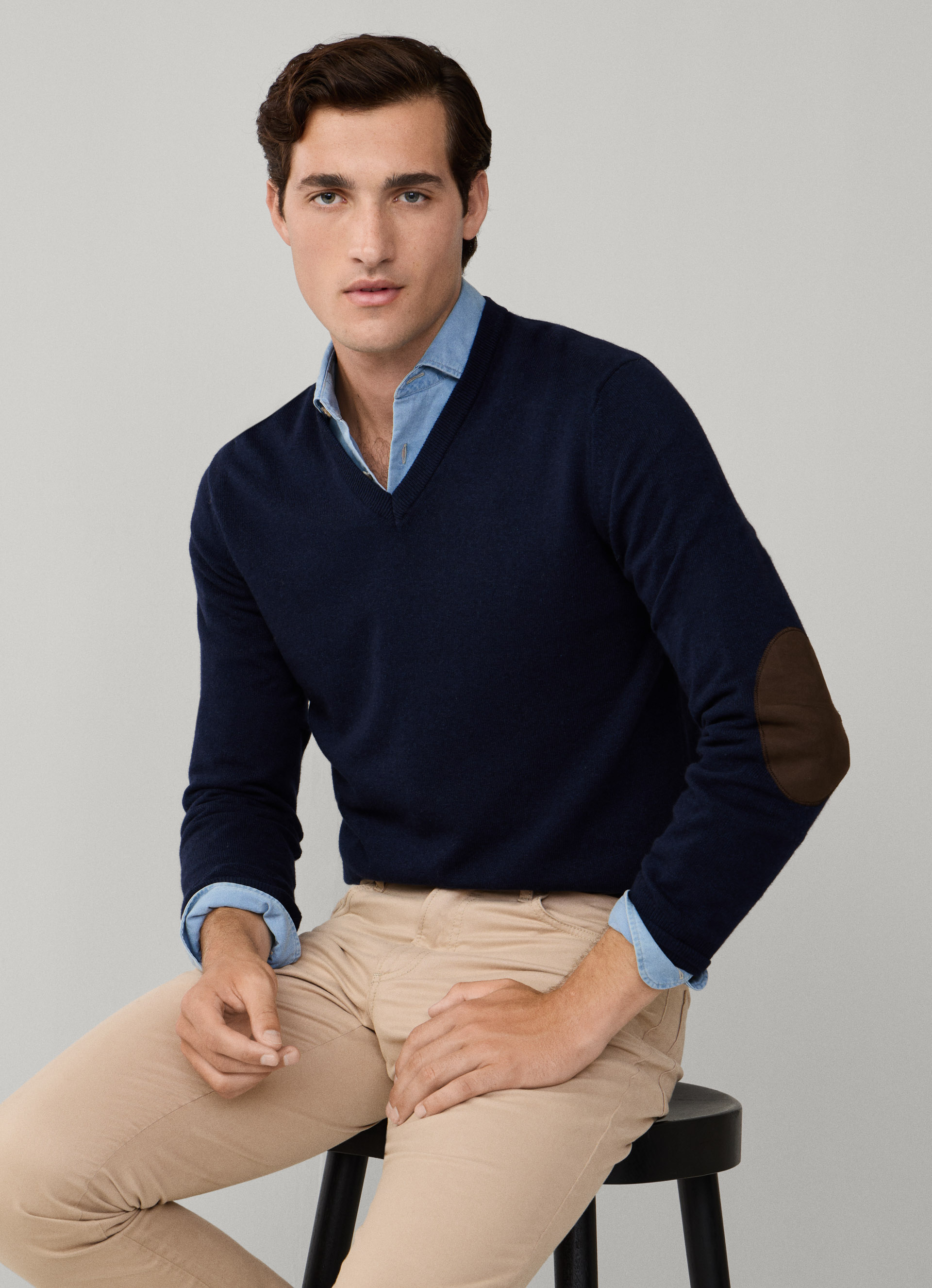 - V-neck jumper knitted in a soft merino-cashmere Italian blend