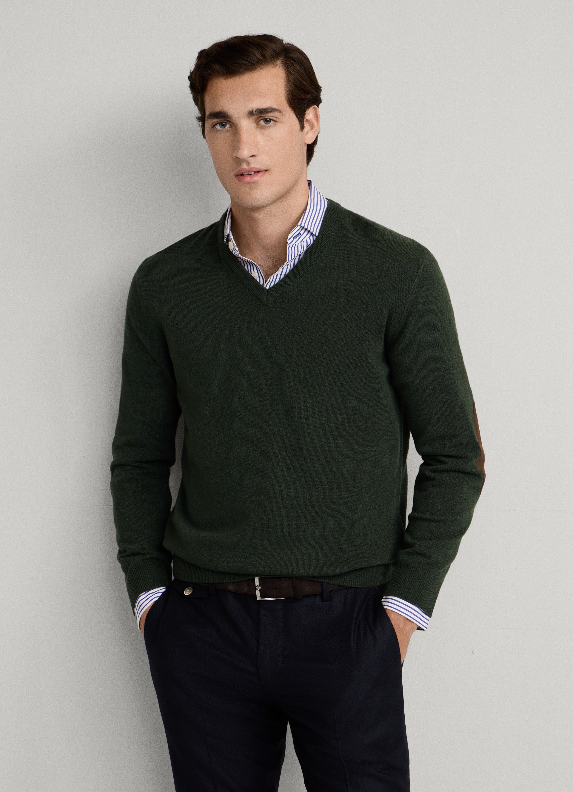 - V-neck jumper knitted in a soft merino-cashmere Italian blend