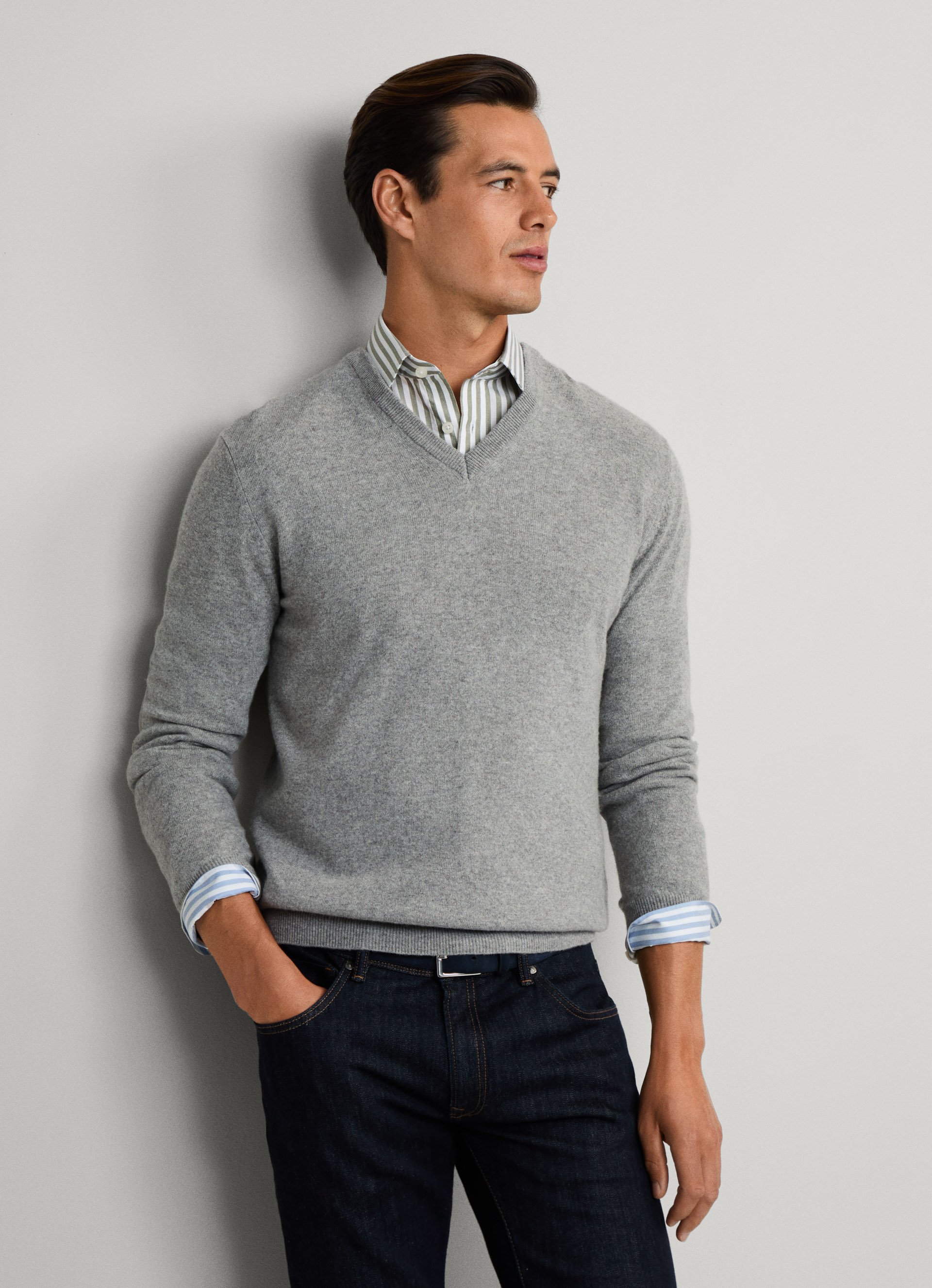 - V-neck jumper knitted in a soft merino-cashmere Italian blend
