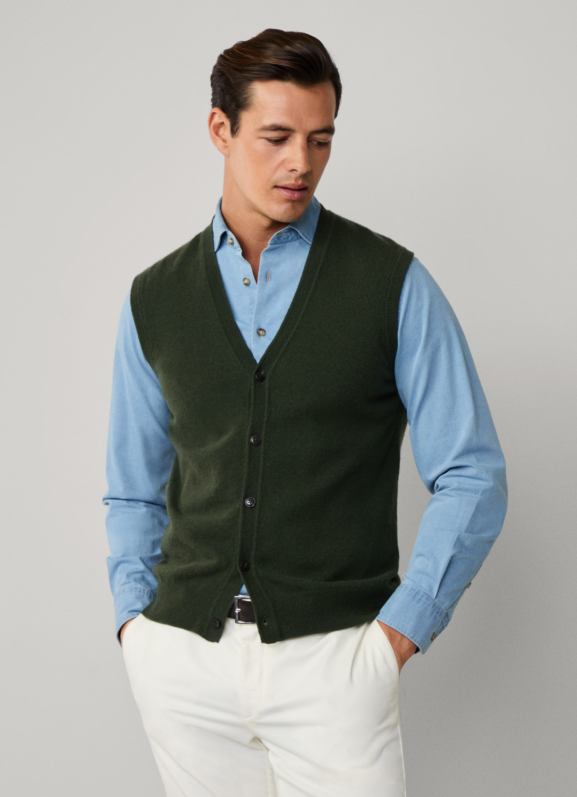 - Waistcoat knitted in a soft merino wool and cashmere blend