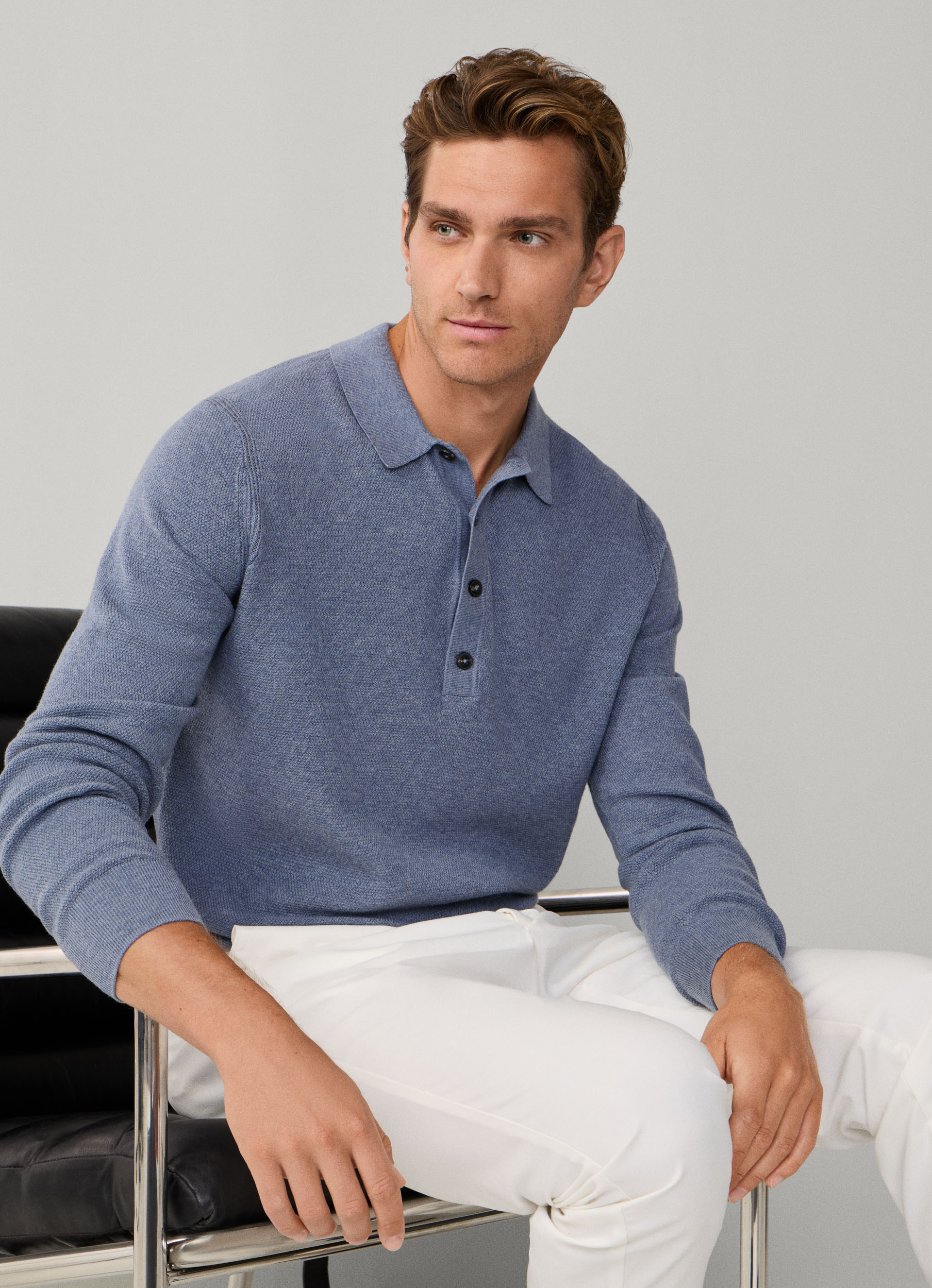 merino wool textured long sleeve knitted polo