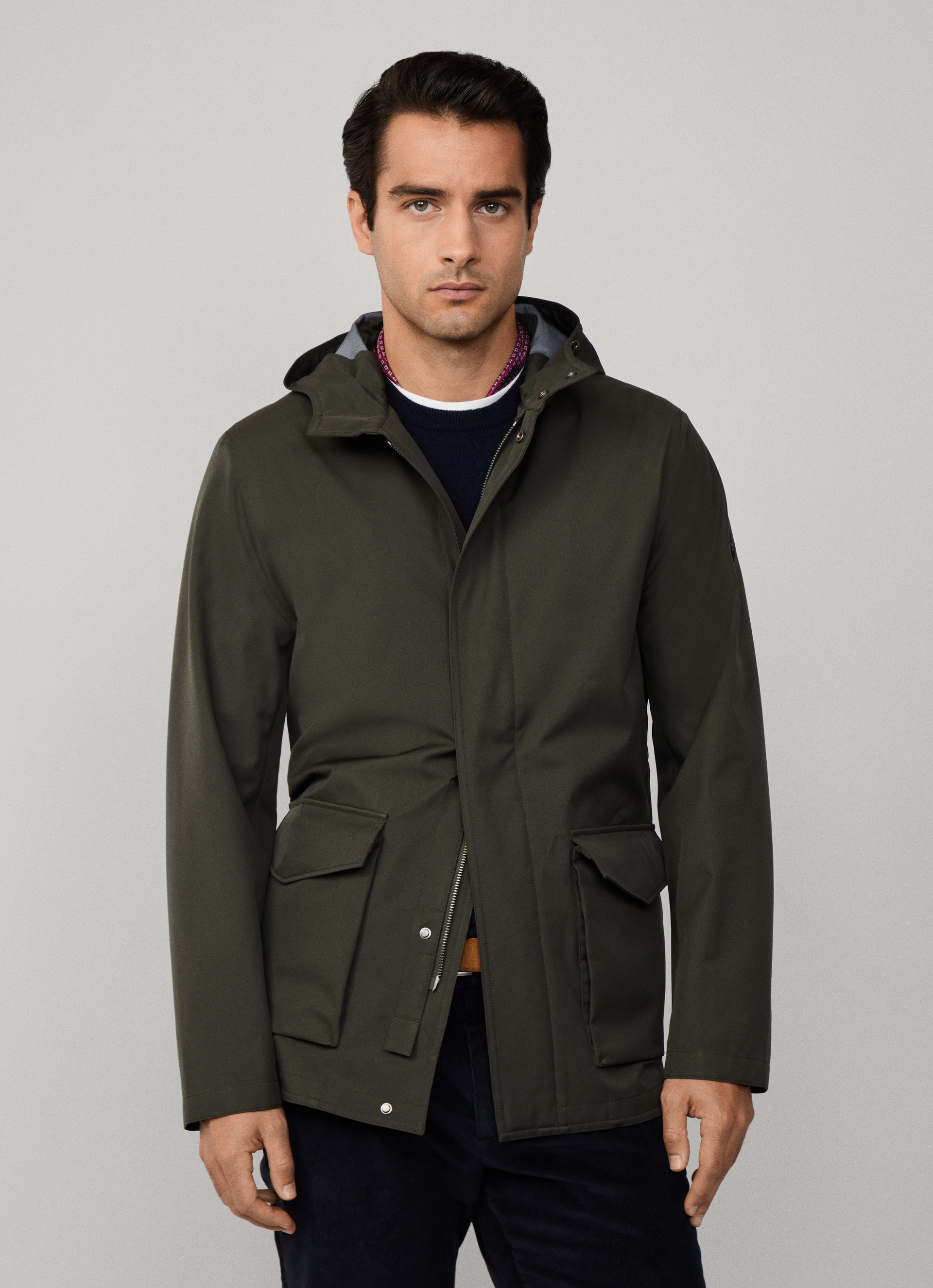 - Two clean lower patch pockets with flap