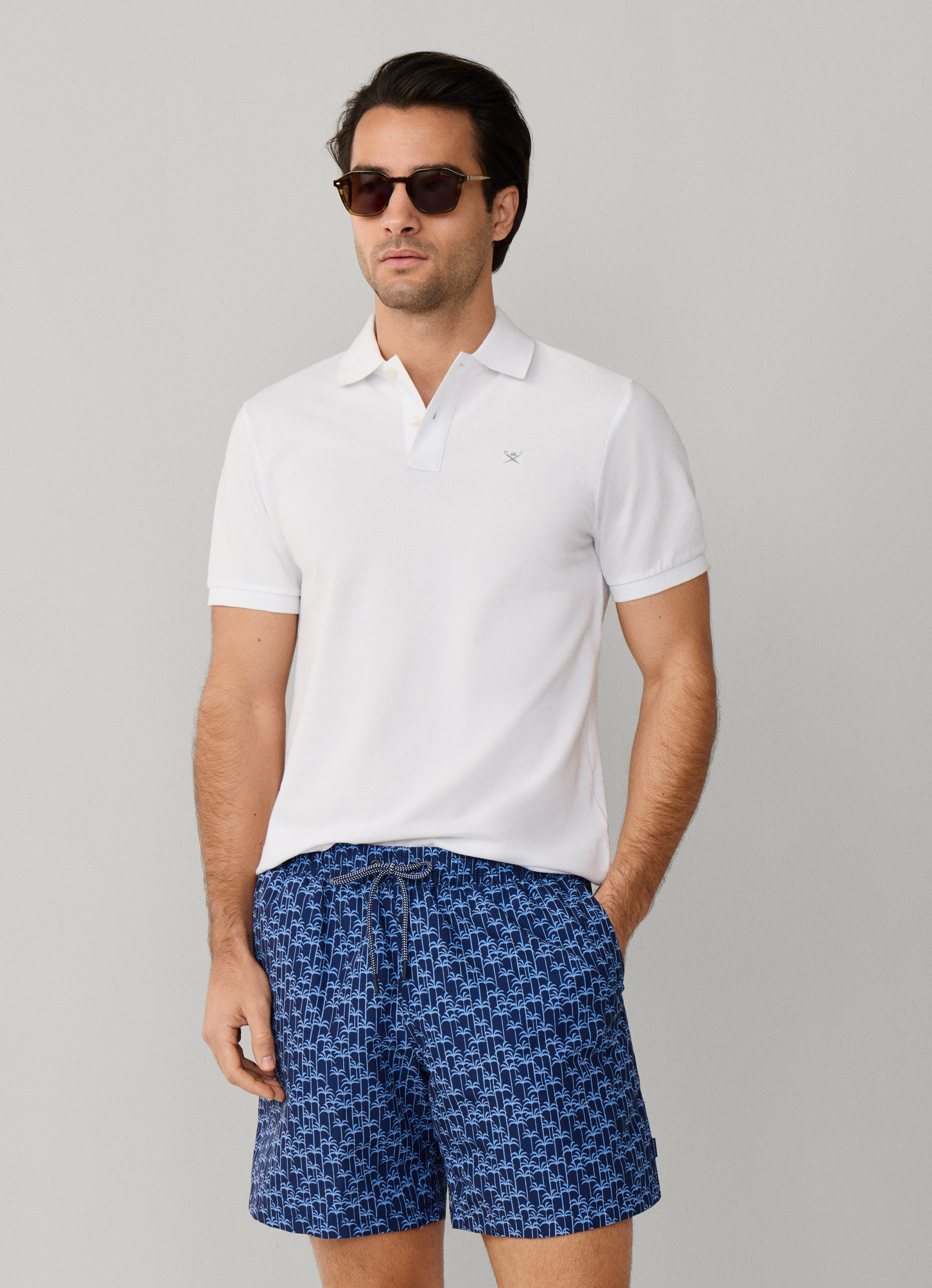 - Printed regular fit swim trunks.