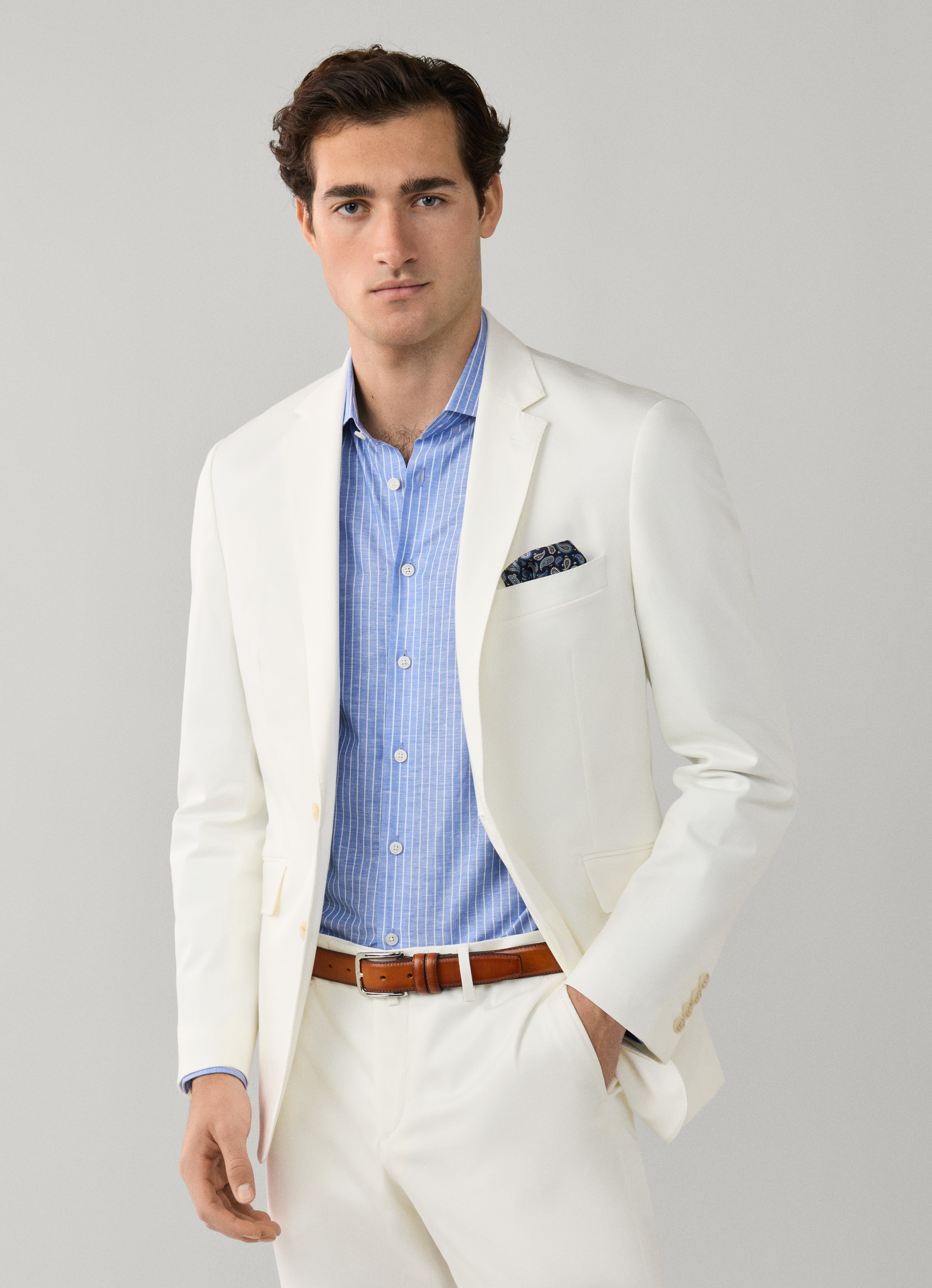 - Unlined, single-breasted two button fastening, notch lapel, flap pockets and closed button cuffs See More Details