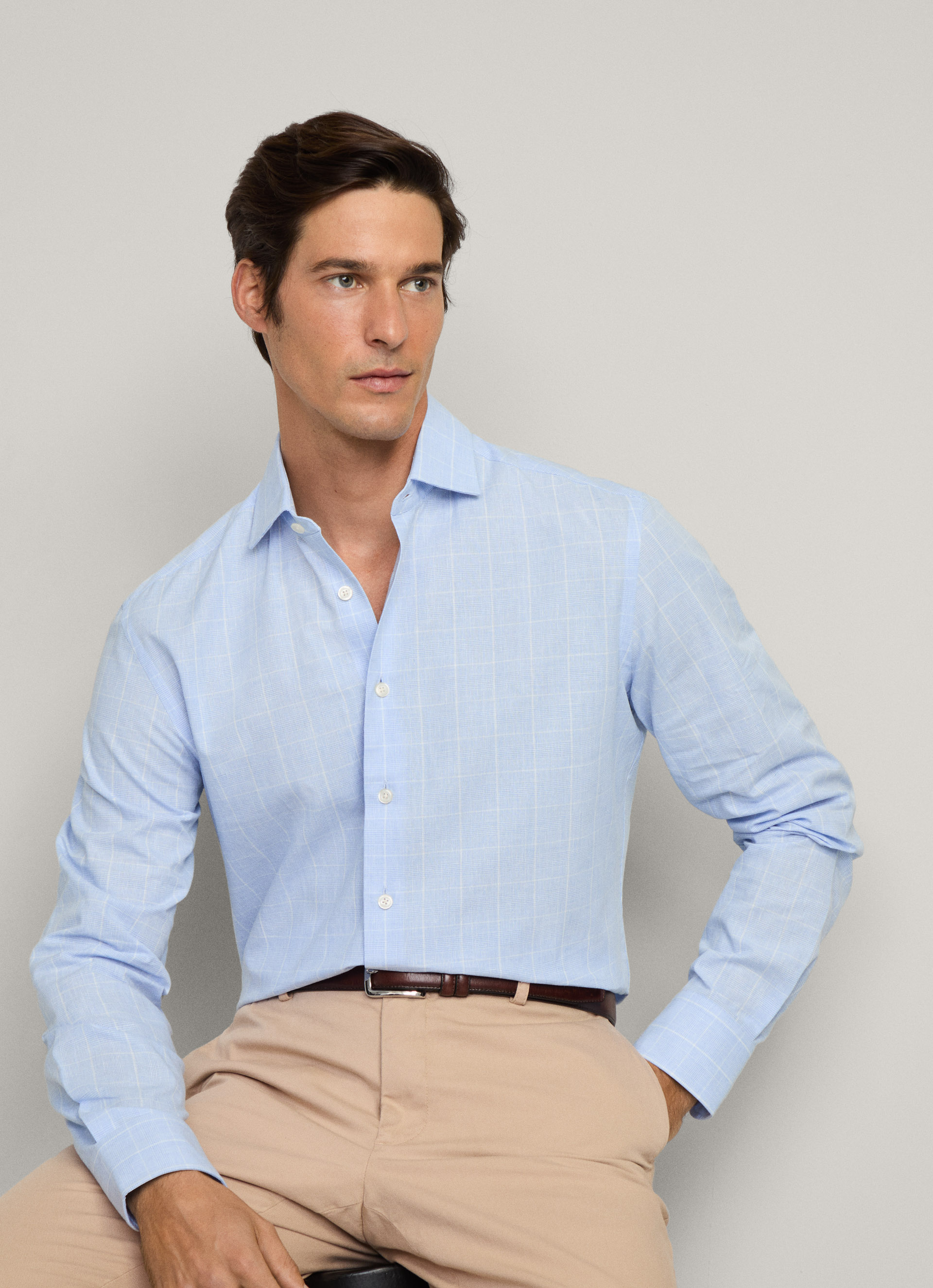- Kent cutaway collar, a hallmark of Hackett’s classic shirt styles