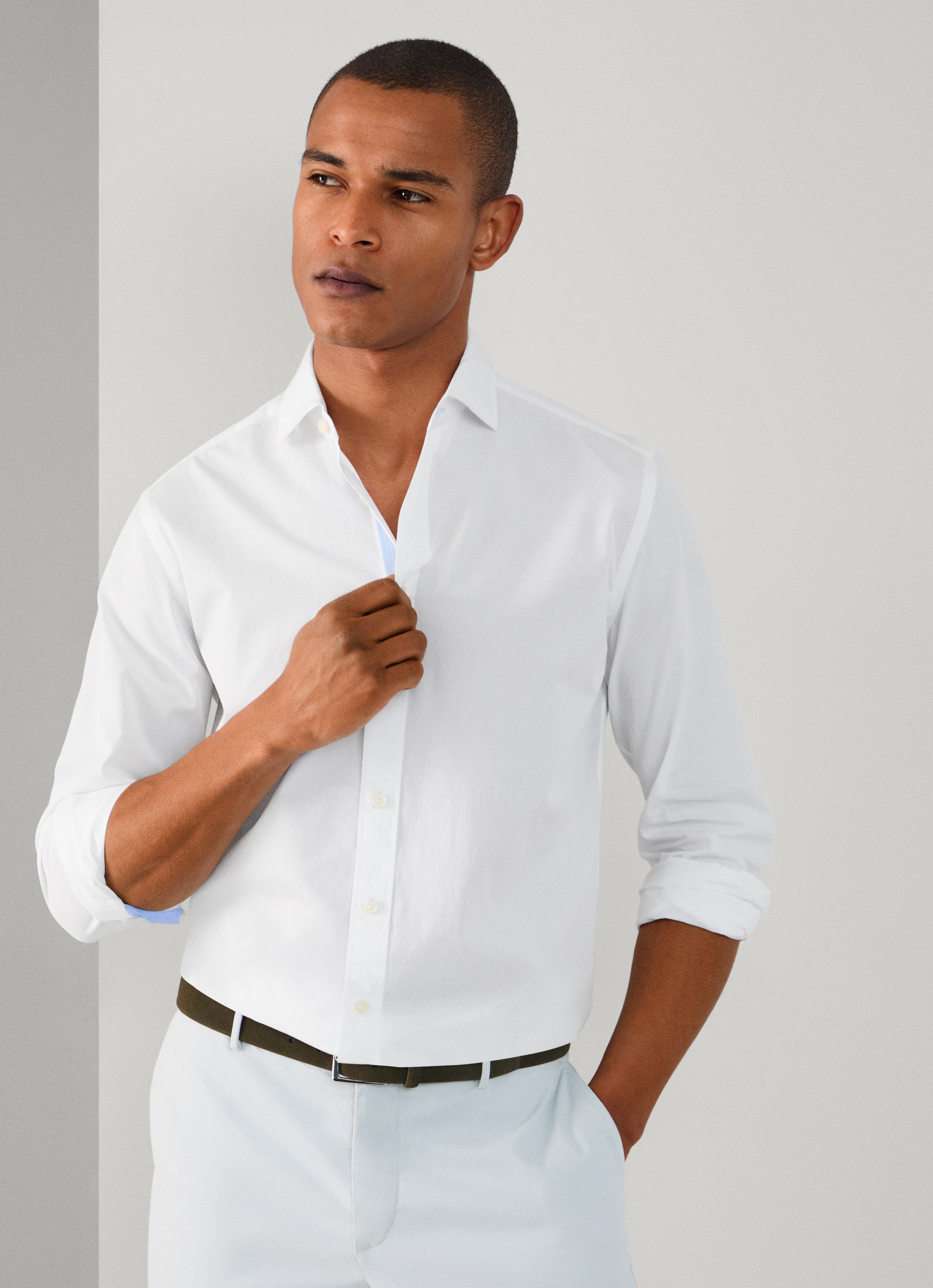 - Kent cutaway collar, a hallmark of Hackett’s classic shirt styles